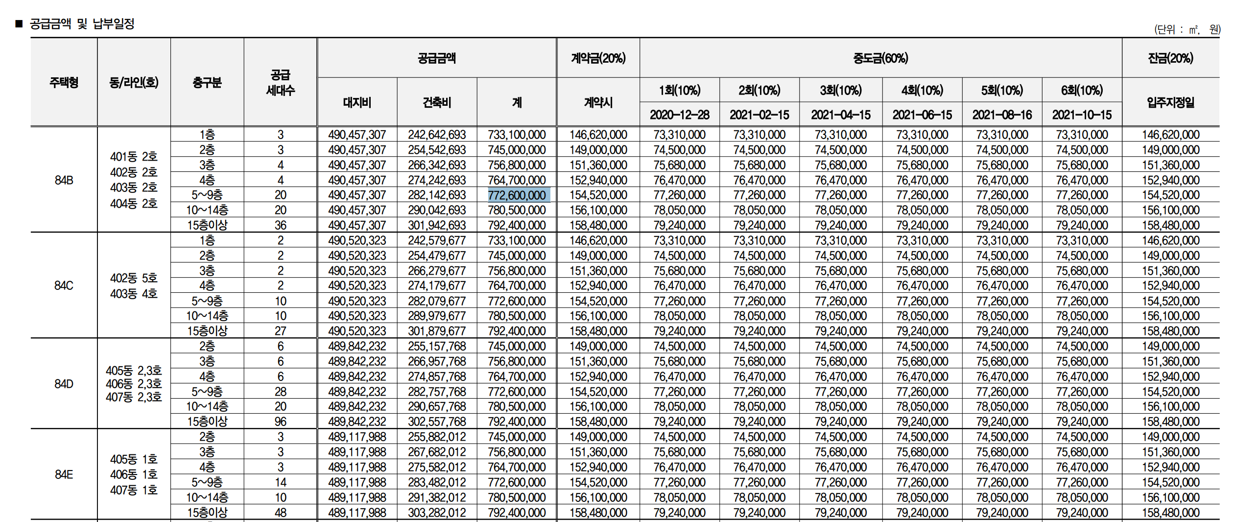 중도금 대출은 40% 범위이니 3.1억 정도는 대출받고 준비할 현금으로는 계약금 1.5~1.6억이 필요하고 이후에 중도금 5,6회 및 잔금 해서 3.1억 정도가 더 필요하겠습니다. 정말 영혼을 끌어모아도 될까 말 까고 영혼을 끌어 모은다 해도 대출이자만 해도 어마어마할 거 같네요. 과연 제 형편에 맞는 건지 계속 고민해 봐야겠습니다 ㅠㅠ