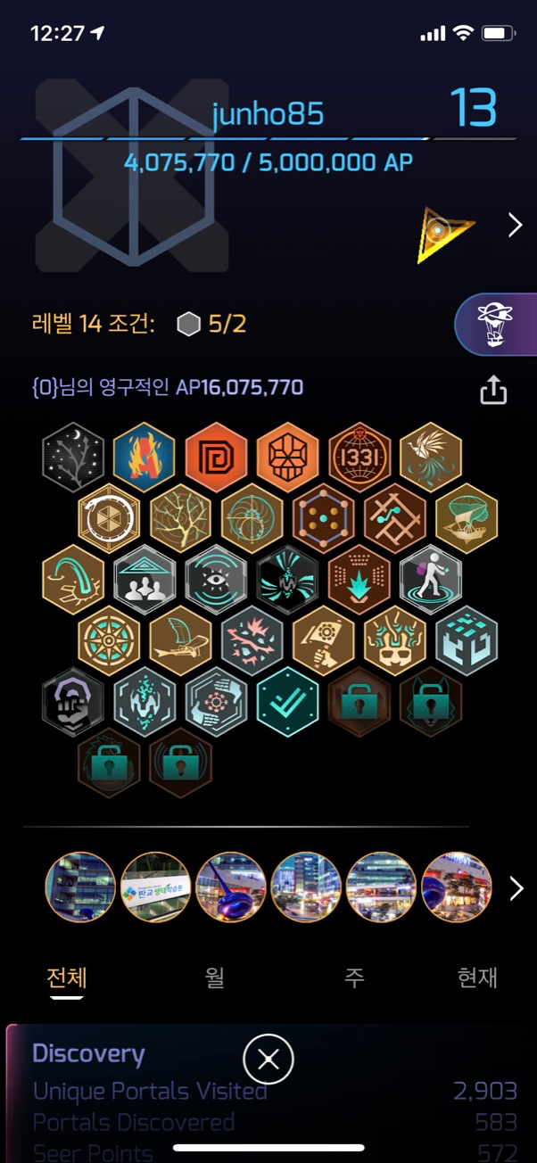 요즘 어나멀리 때문인지 적군의 움직임이 더욱 거세졌다. 경희대에 레벨7짜리 포탈이 생겨서 파밍이나 가볼까 했는데 r* 님이랑 J* 님 A* 님 이 석계부터 경희대까지 싹 다 밀어 버렸음 ㅜ.ㅜ 면목