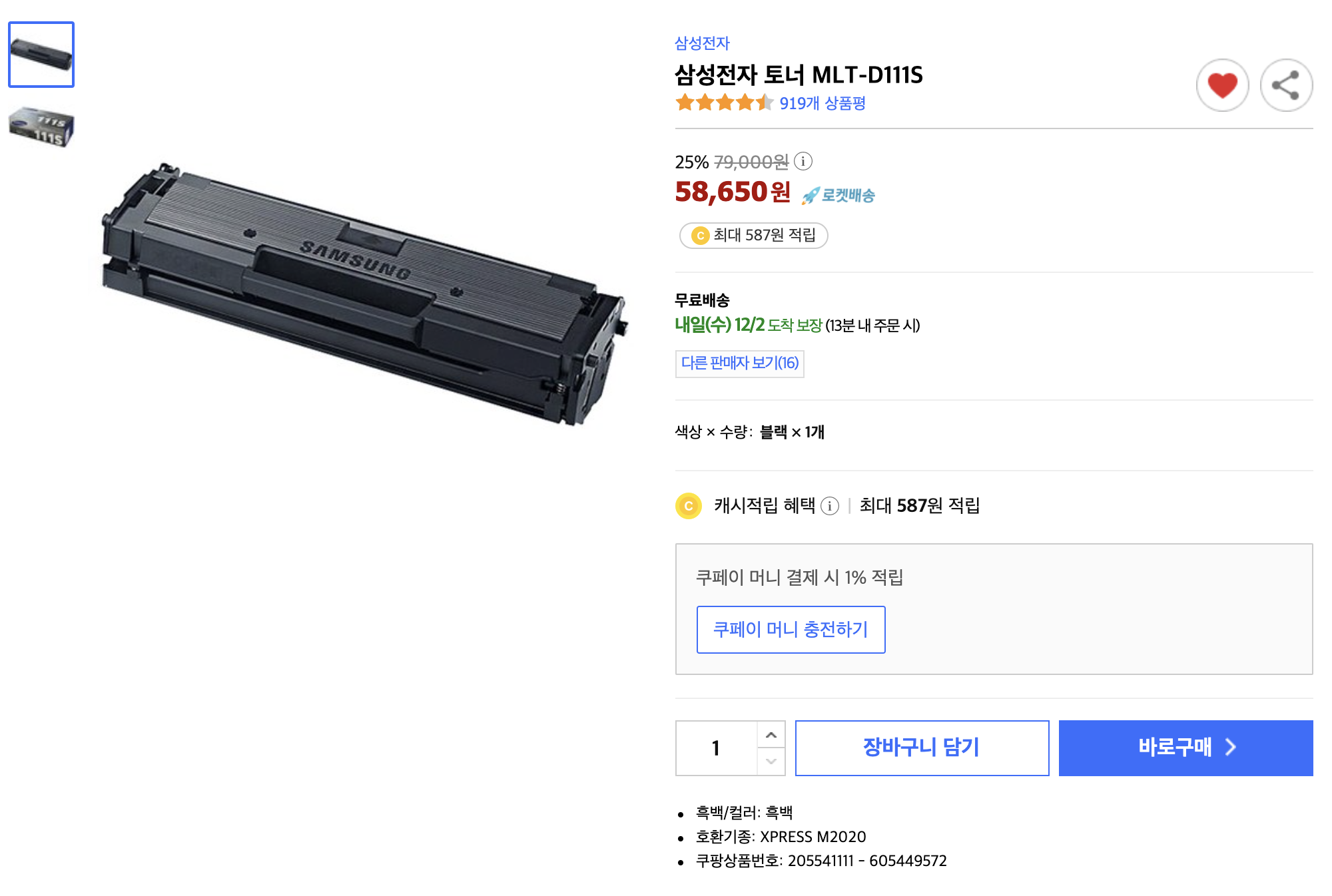 MLT-D111S 토너 구입. 삼성 M2026 프린터용 본문
