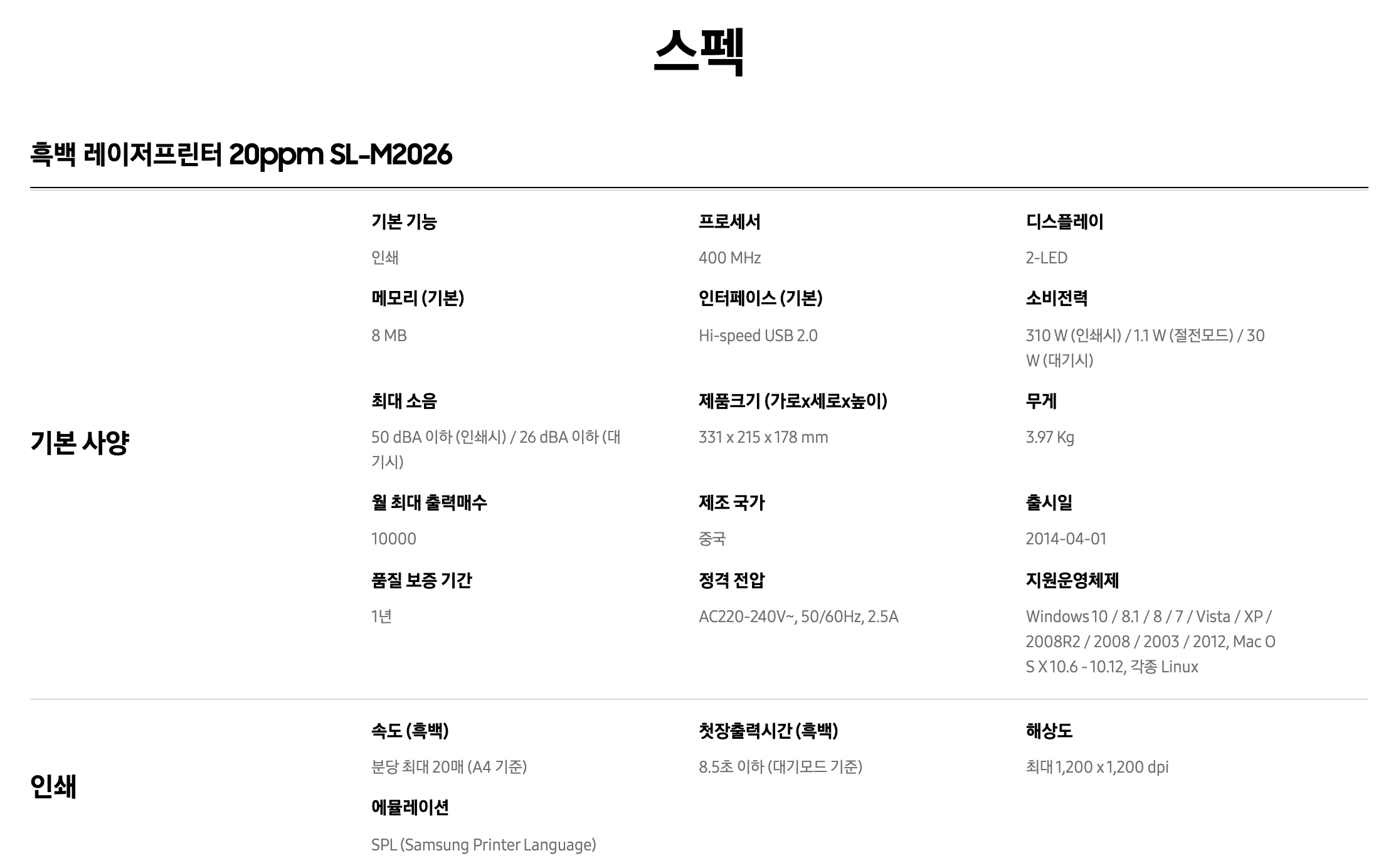 모델명은 SL-M2026입니다.