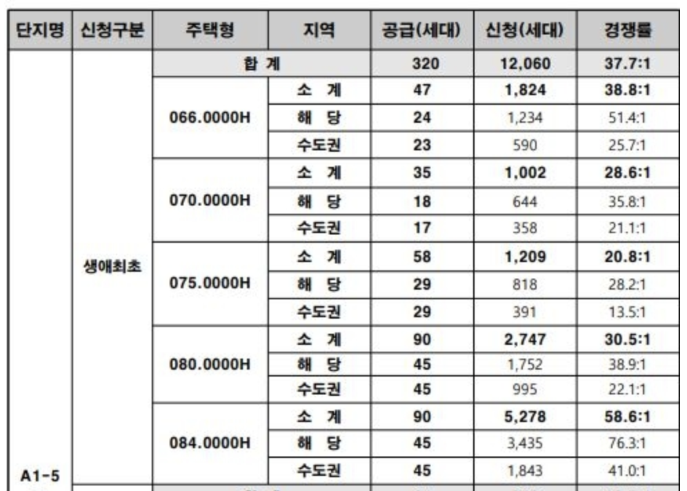 관심 있는 사이즈인 84 사이즈의 생애최초 특별공급 경쟁률은 58.6:1이었습니다.