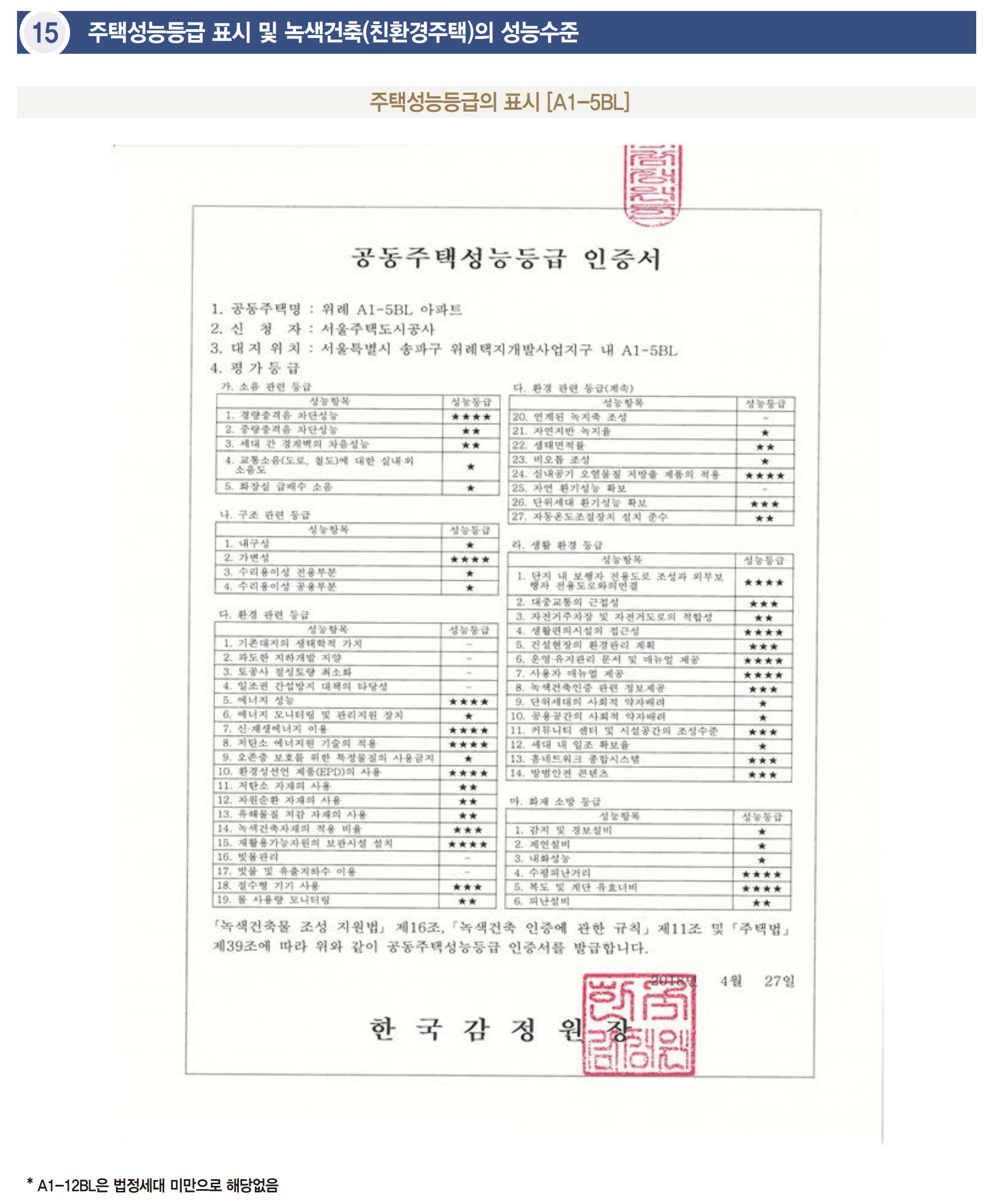 층간소음만 비교해 보면 위례 A1-5BL은 아래와 같고