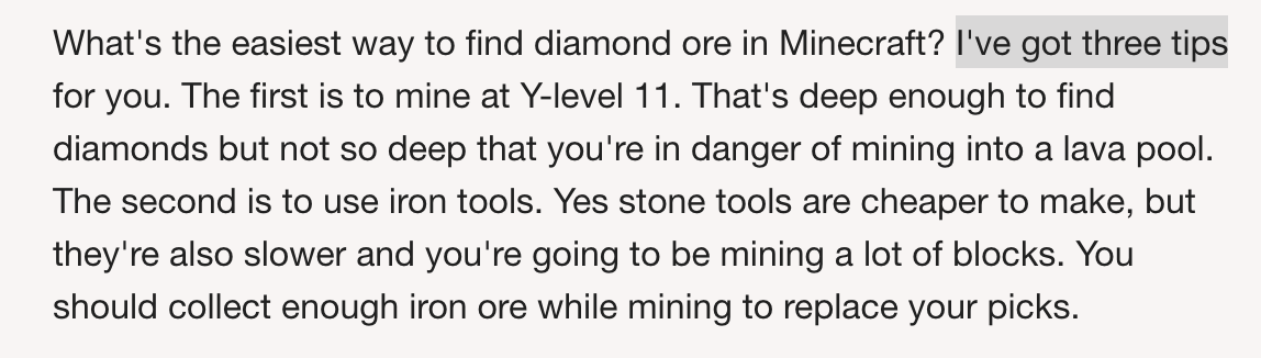 참고로 단순히 초반에 빠르게 다이아몬드를 찾고 싶다면 그냥 빠르게 지하 동굴을 찾아서 동굴을 뛰어다니며 찾는 게 더 빠를 수도 있습니다. 아무래도 채굴에는 시간이 많이 소요가 되니까요.
