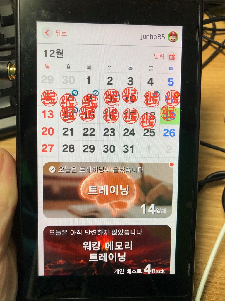 링 피트로 매일매일 운동을 이어 나가고 있습니다. 두뇌 트레이닝처럼 일부 싱크가 안 맞아서 날아간 날짜가 있을지도 모르겠습니다.