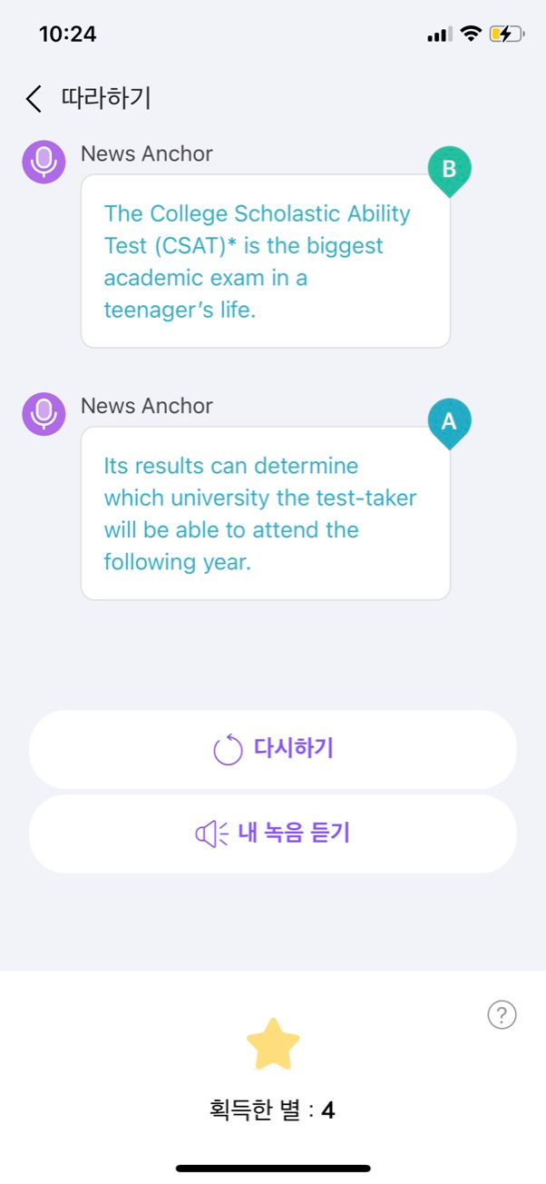 카카오 프로젝트 100에서 하던 케이크 앱에서 영어로 말하기를 꾸준히 이어가고 있습니다.