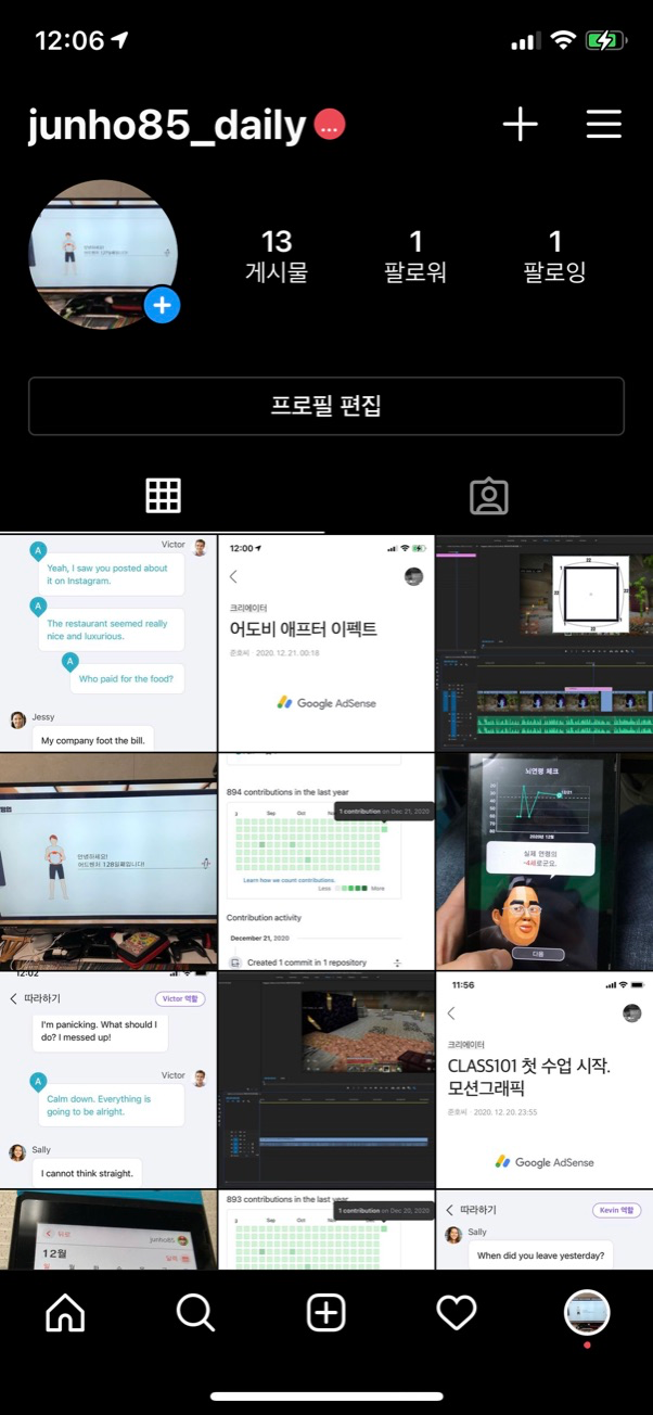 아무튼 어떻게 하면 좋을까 하다가 인스타그램 계정을 하나 더 팠습니다.