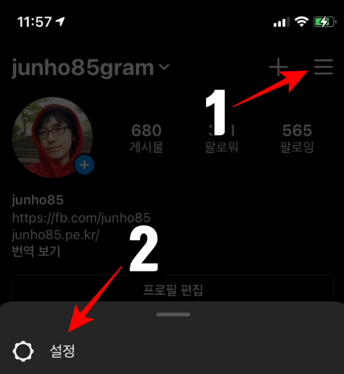 인스타그램 우측 상단의 버튼을 누르고 설정으로 들어갑니다.