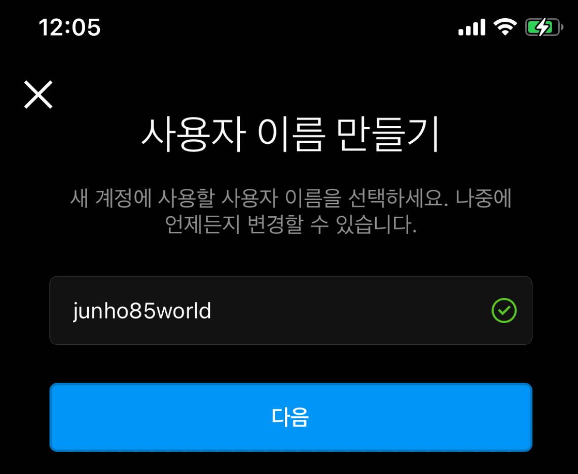 새로운 사용자 이름을 만들어 주고요. 사용자 이름은 인스타그램 ID가 되고 아래처럼 주소가 생성됩니다.
