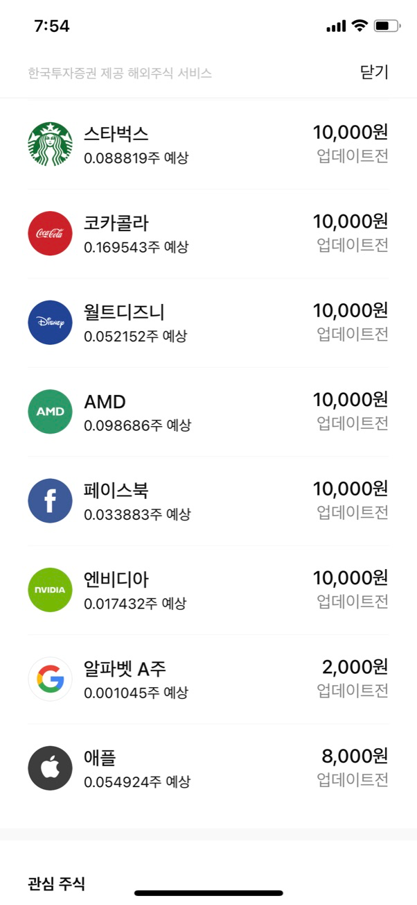 저는 애플 8,000원과 구글(알파벳 A 주) 2,000원을 선택했습니다.