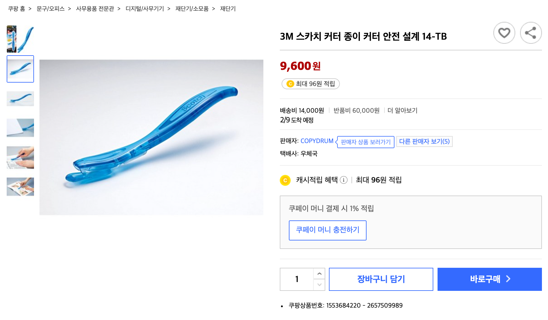3M 스카치 커터 종이 커터 안전 설계 14-TB