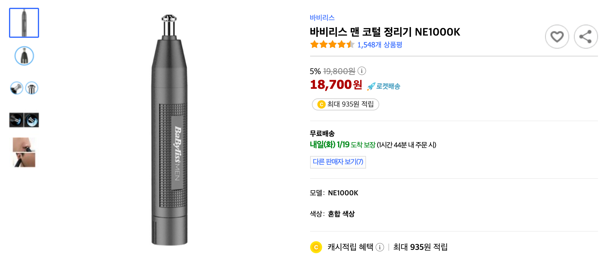 재구매 - 바비리스 맨 코털 정리기 NE1000K 본문