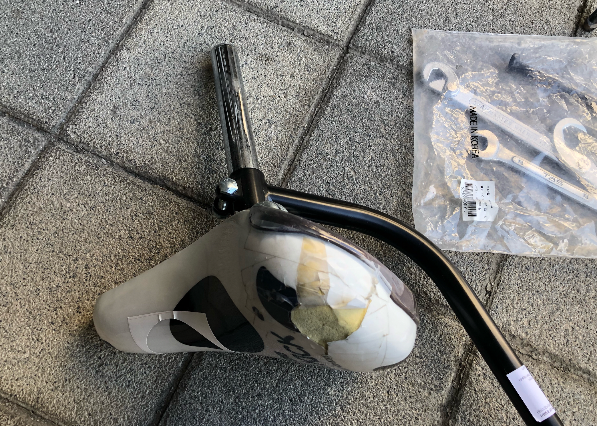 안장을 뽑고 보호자 밀대를 끼우고 너트를 조였습니다.