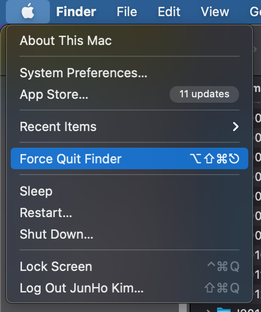 osx - kill finder. finder 강제 종료 시키기. Big Sur로 올리고 나서 AirDrop이 행업되는 증상 임시 해결
