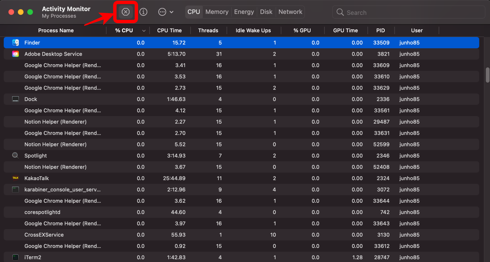 Activity Monitor에서 강제 종료