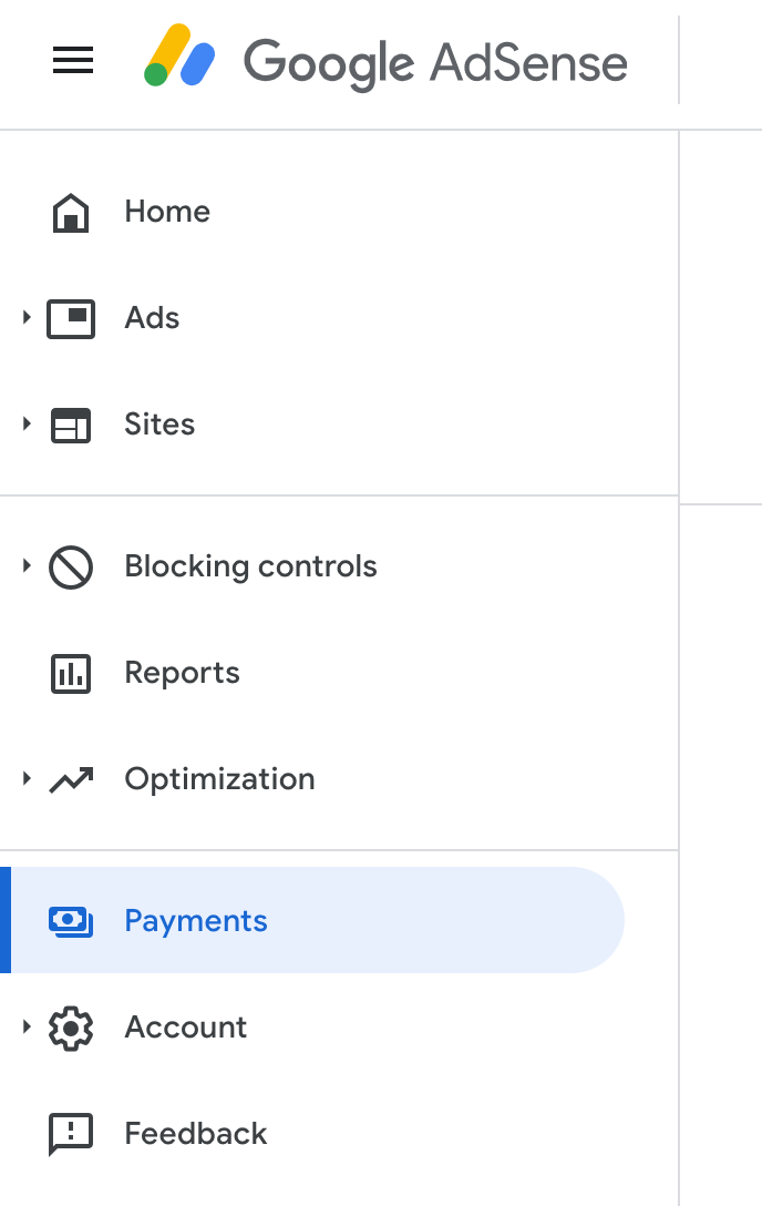 구글 애드센스 홈페이지에 가서 Payments로 들어갑니다. 한글 버전을 사용하시면 "지급"이라고 되어 있을 겁니다.