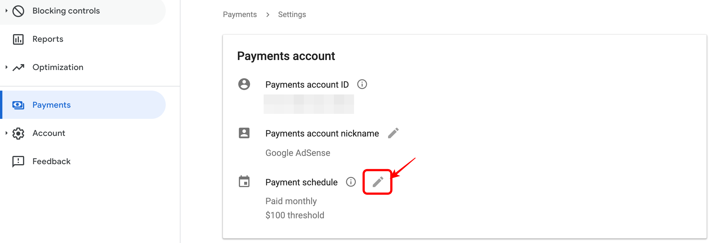 Payment schedule옆에 있는 연필 아이콘을 클릭합니다.