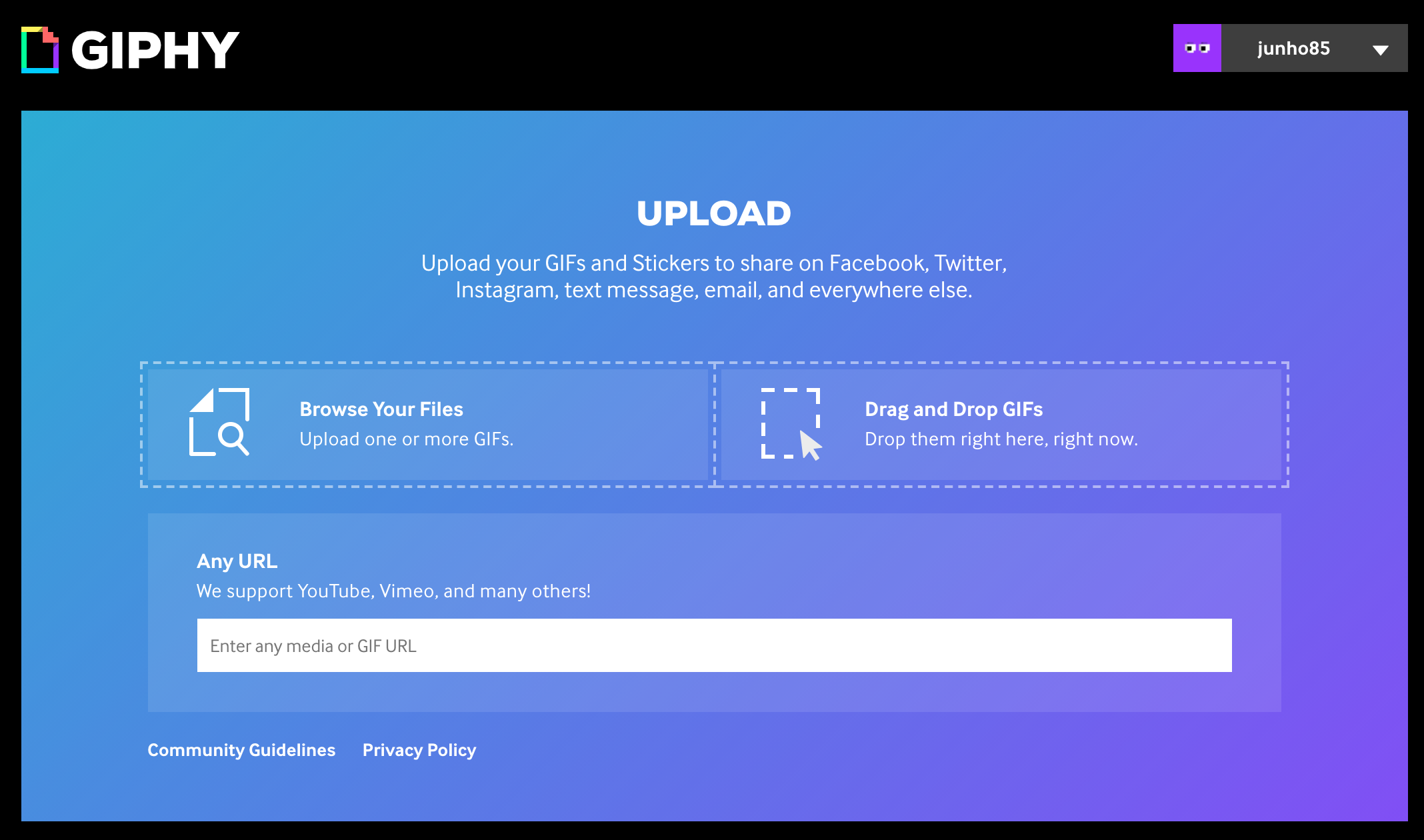 Upload to GIPHY를 누르면 파일 업로드 및 변환이 진행됩니다.