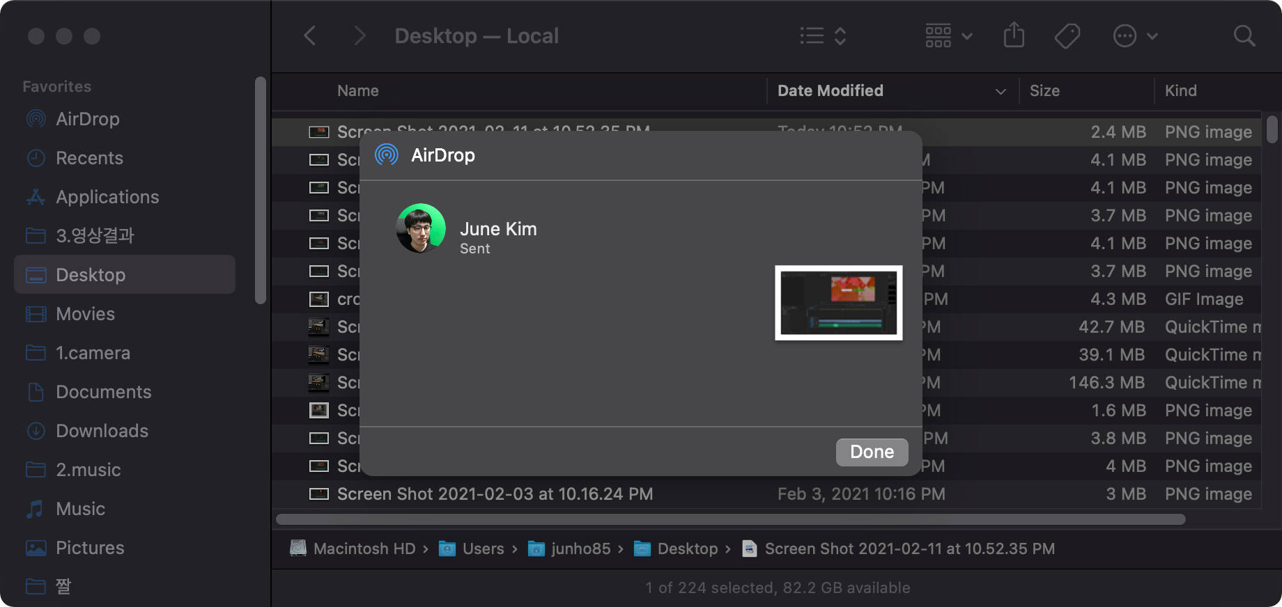 2021.02.12 (금) 추가. 여전히 AirDrop 하려고 하면 Finder가 멈추는 증상이 있습니다.