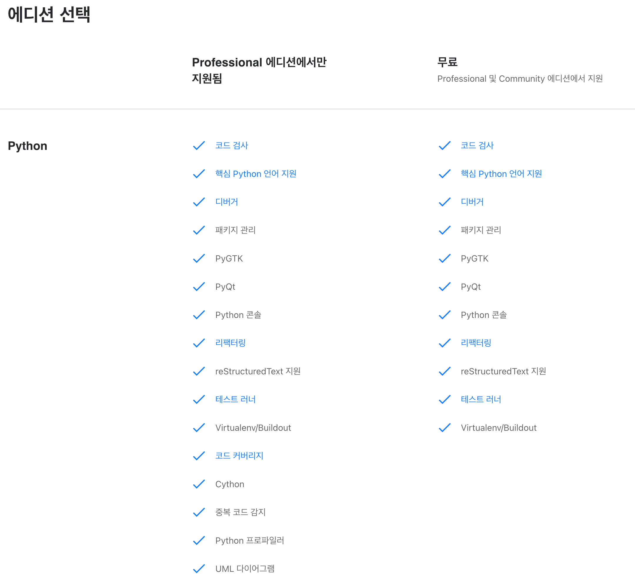 www.jetbrains.com/ko-kr/pycharm/features/editions_comparison_matrix.html