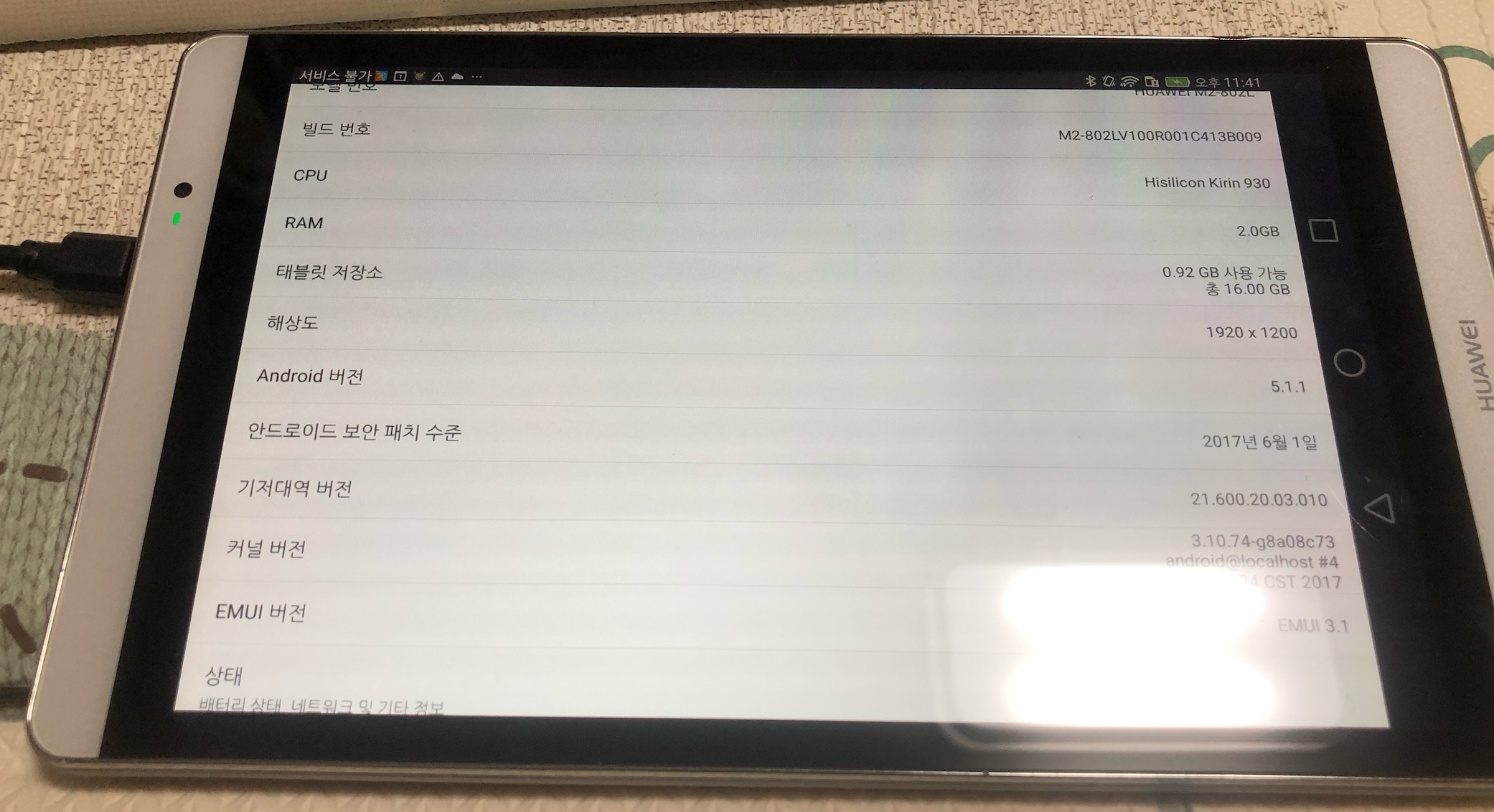 화웨이 비와이 패드. Huawei Be Y. M2-802L. 안드로이드 버전업. 일부 게임 깜빡거림 해소. 본문