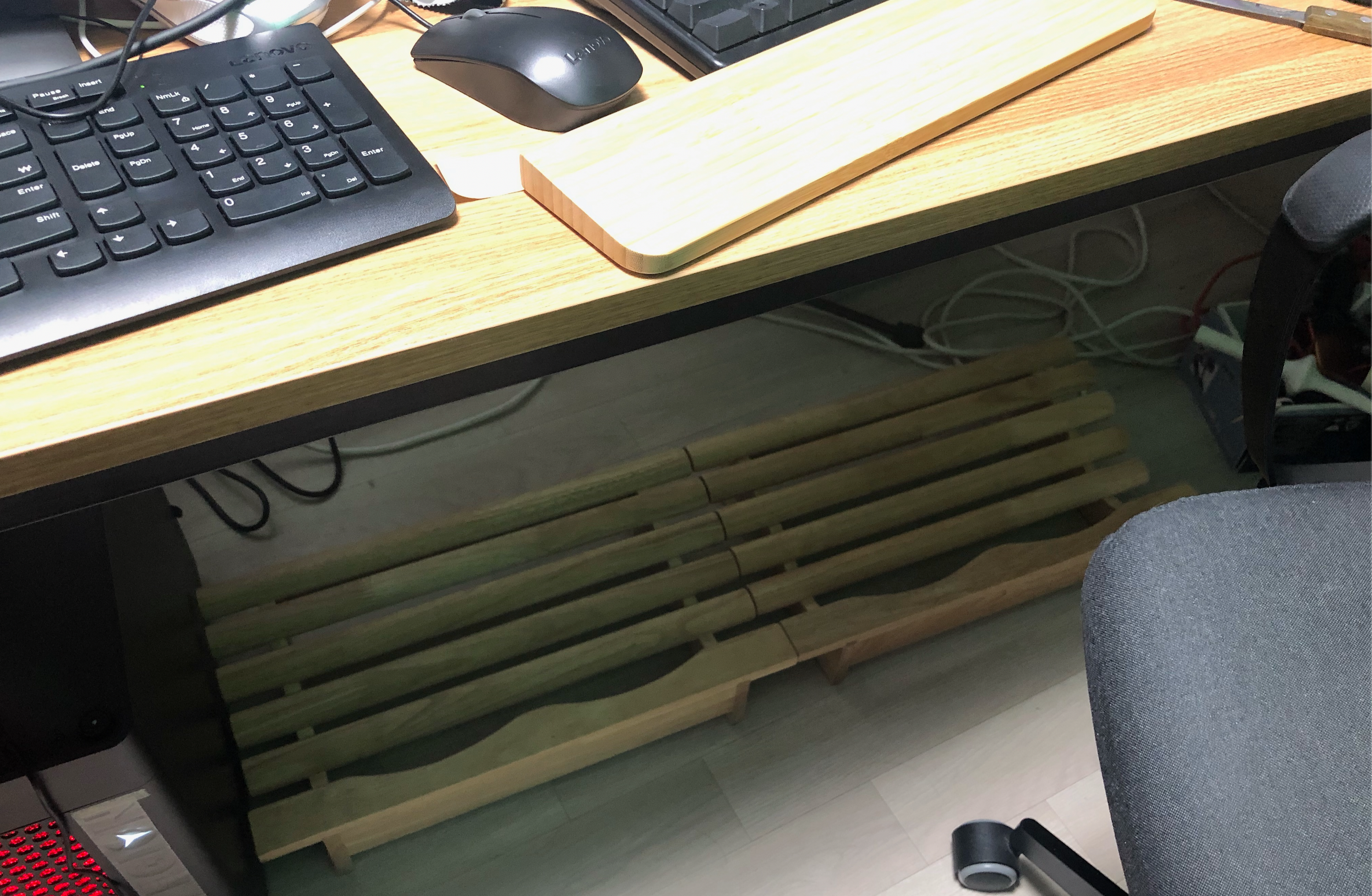 두 개 설치해 두니 양쪽 컴퓨터 왔다 갔다 해도 발 높이가 적당하니 좋네요. (사실 저렇게 발 받치라고 나온 제품은 아닌데 지금 세팅상 저기 발 올리는 게 높이가 딱 맞더라고요 ^^;)