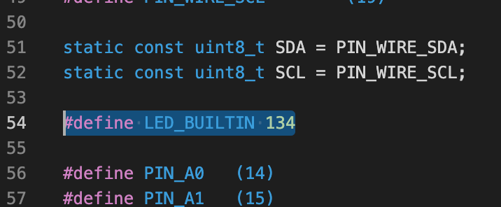 그래서 해당 파일을 직접 고쳐주면 LED_BUILTIN값이 바뀌는 것을 확인해볼 수 있습니다.