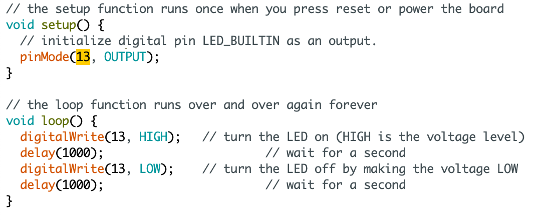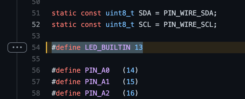 그렇다는 것은 어디선가 LED_BUILTIN을 13으로 바꿔준다고 생각할 수 있는데요. variants/standard/pins_arduio.h에 13으로 선언되어 있는 것을 확인할 수 있습니다.