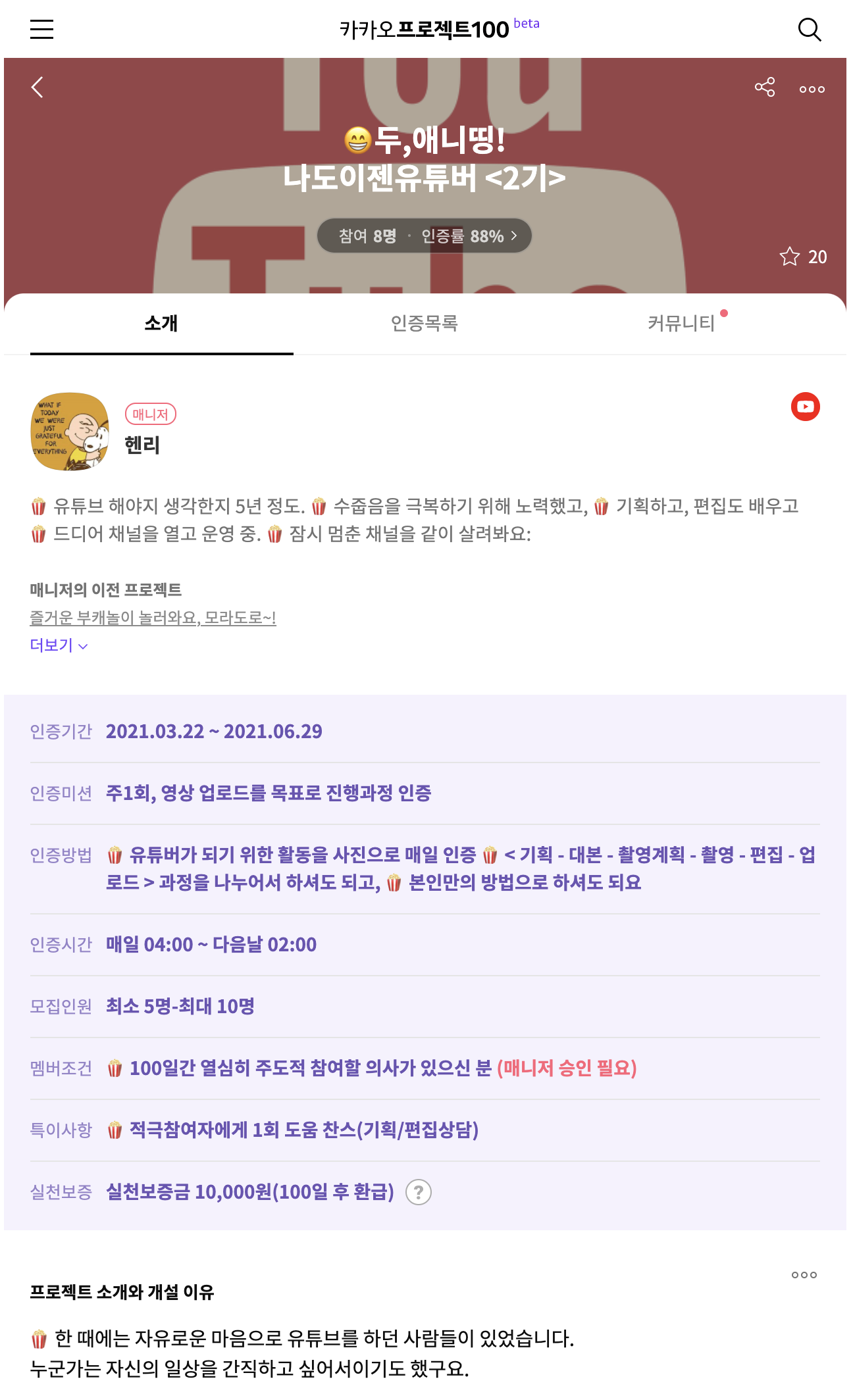 카카오프로젝트100 베타 시즌4 시작. 블로그 포스팅, 유튜브 프로젝트 본문
