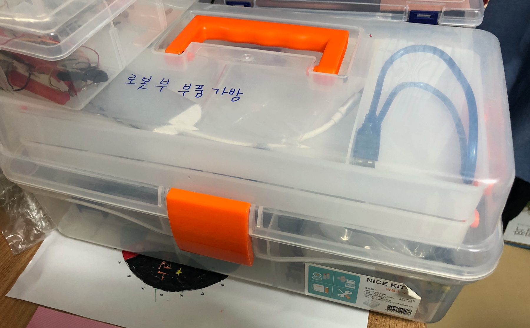 부품이 아주 많은 편은 아니지만 들고 다니기에 불편해서 부품을 담을 통이 필요했습니다. 우선 집에서 아두이노를 담던 부품함을 이용했습니다.