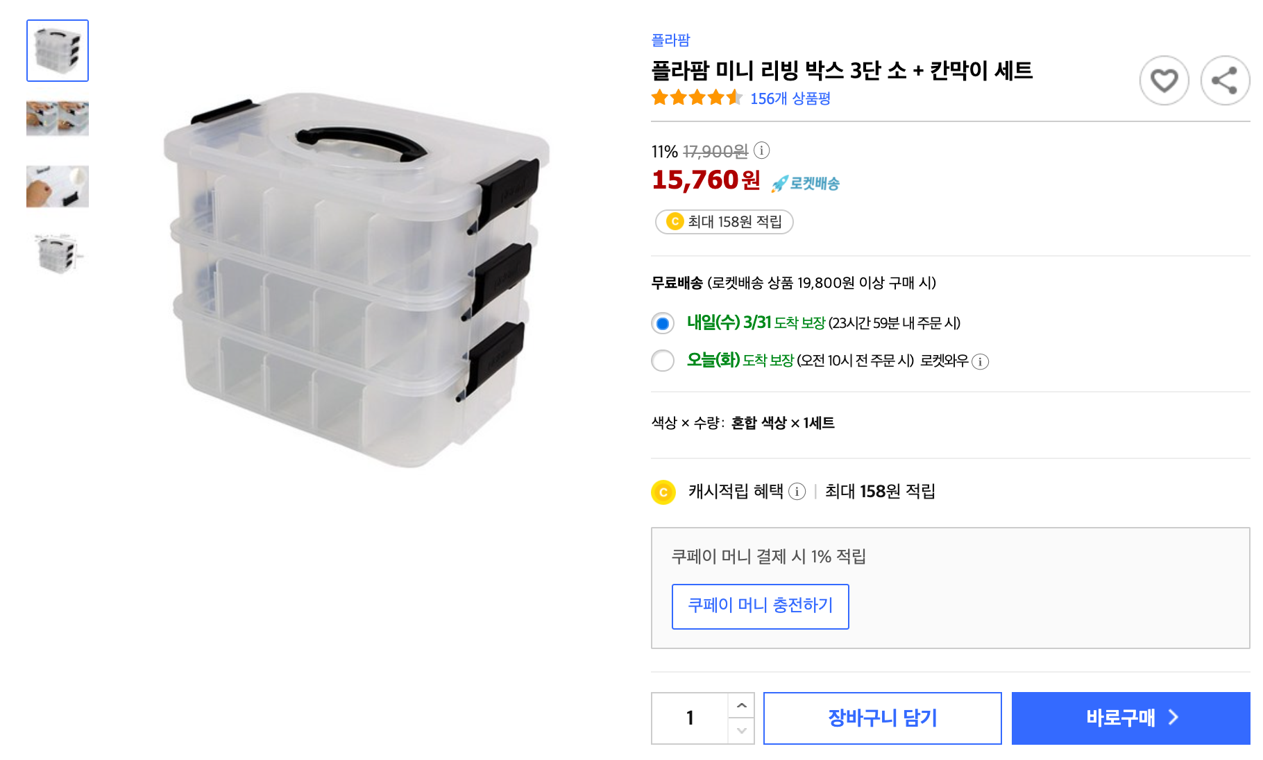 플라팜 미니 리빙 박스 3단 소 + 칸막이 세트