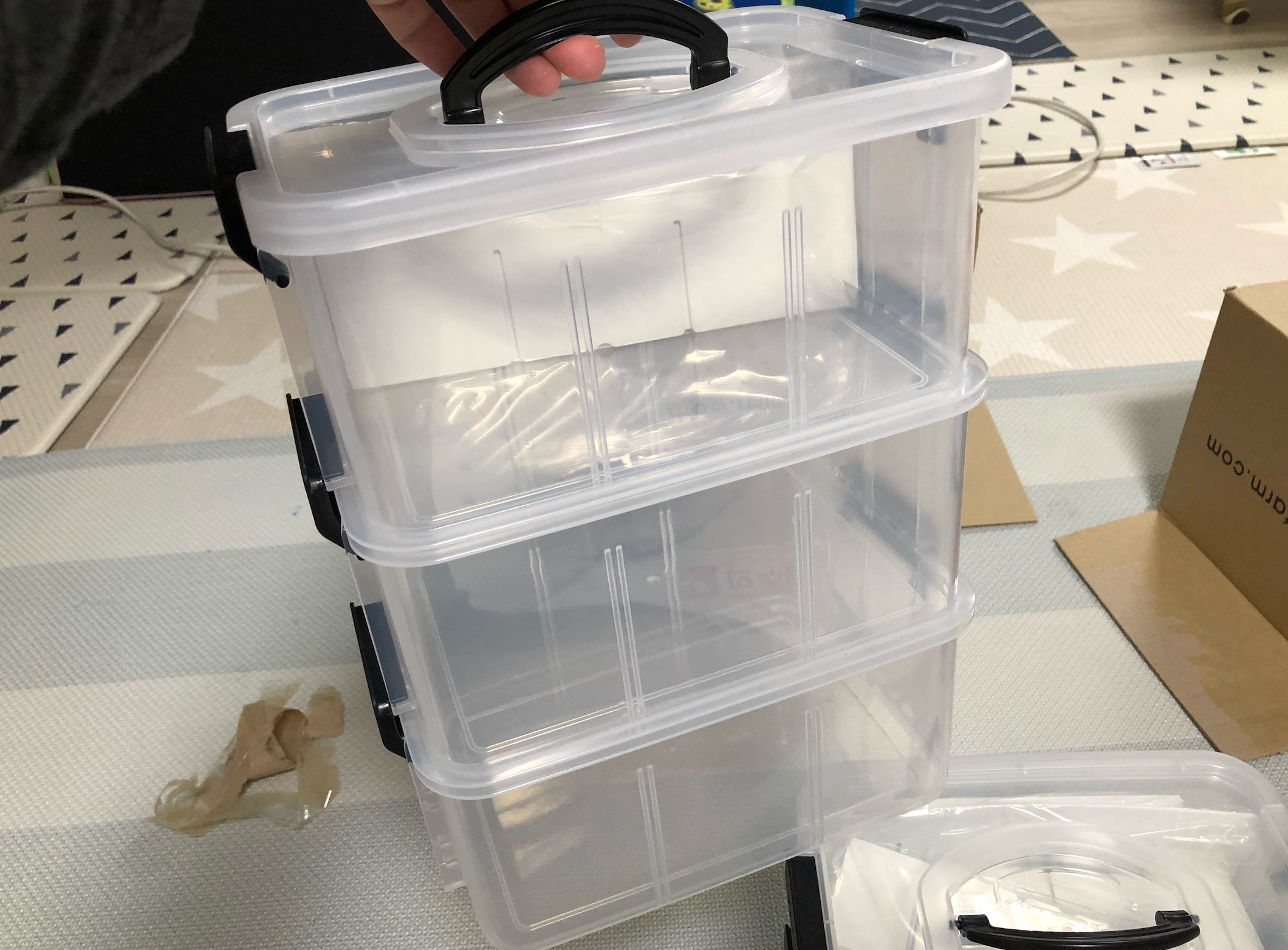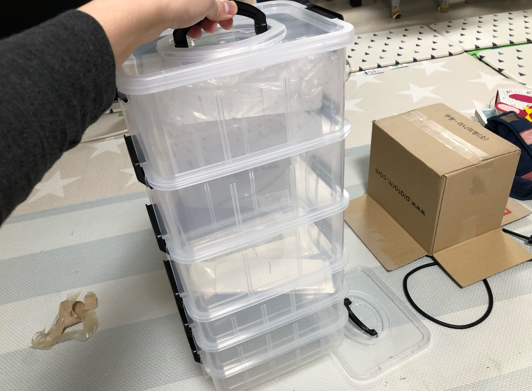 같은 방식으로 대 사이즈 통의 칸막이도 다 끼웠습니다.
