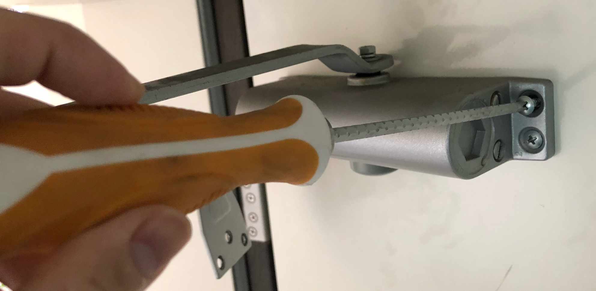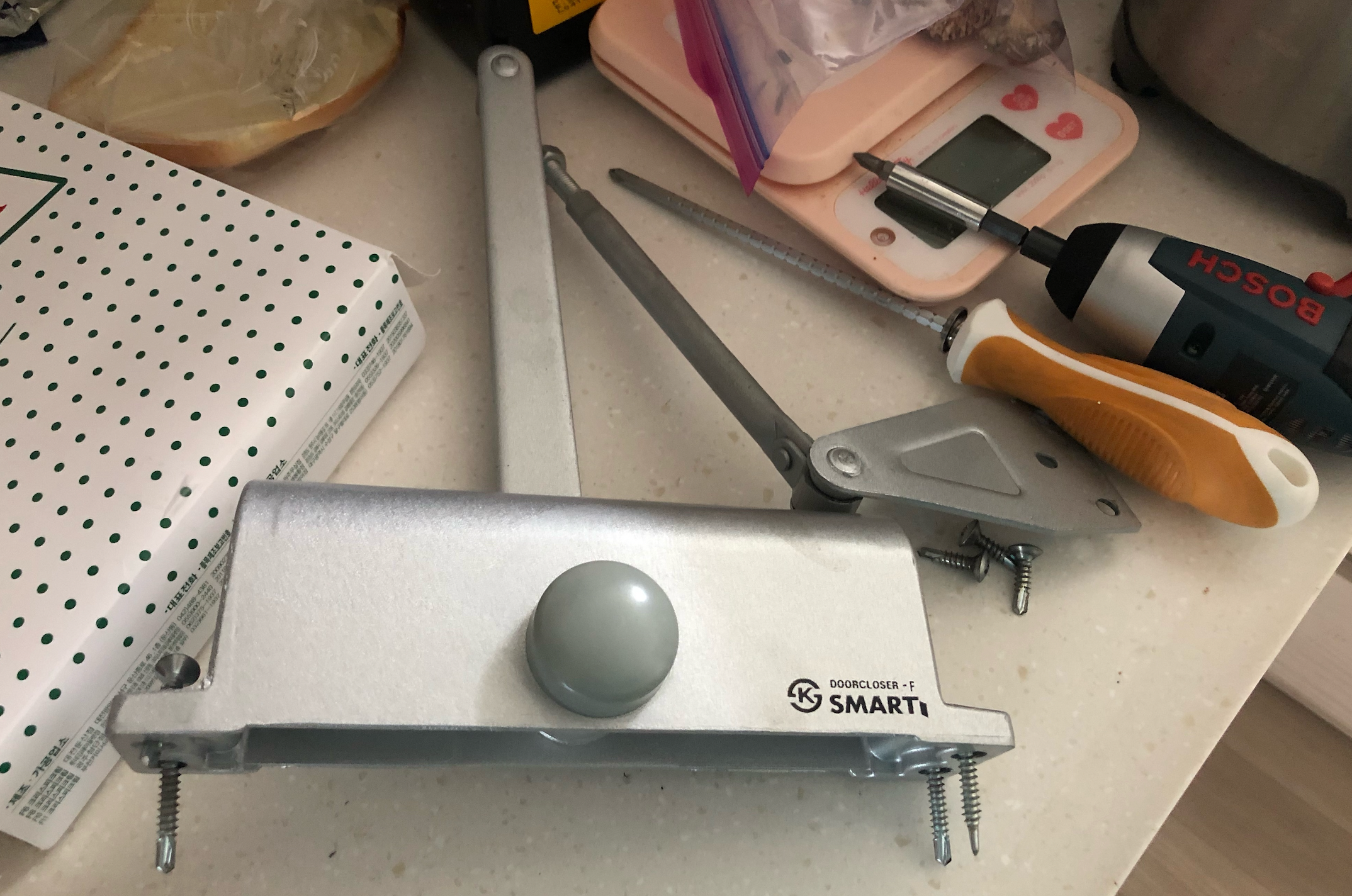 생전 처음으로 직접 장착해본 도어클로저입니다. 기존 위치에 그대로 장착해준 거라 크게 어렵지는 않았습니다.