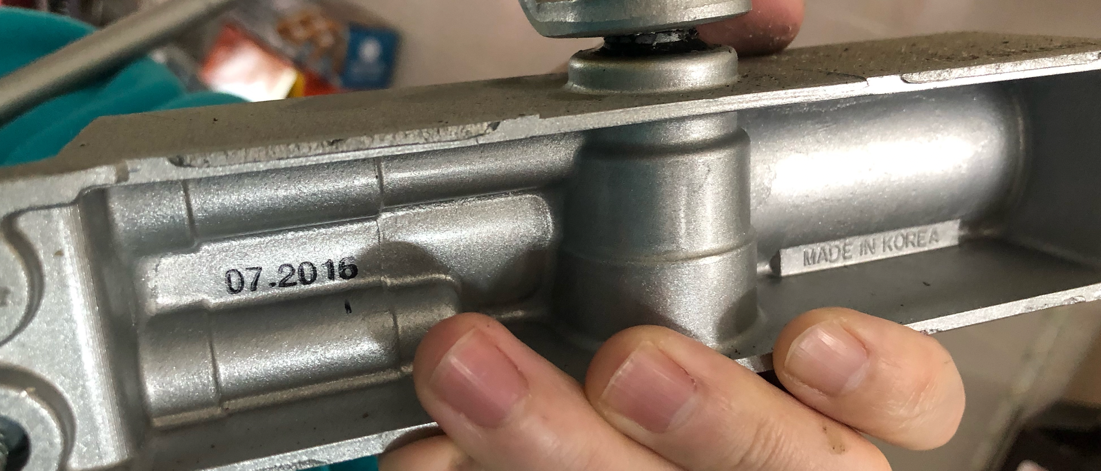 뒤집어 보니 2016.07이라고 찍혀 있는데 아마 생산한 시기인 거 같습니다. 보통 도어클로저 수명이 5~10년 정도 된다는 거 같은데요. 슬슬 고장 날 때도 되었었나 봅니다. 집에서 가장 자주 여닫는 문이다 보니 먼저 고장이 났나 봅니다.