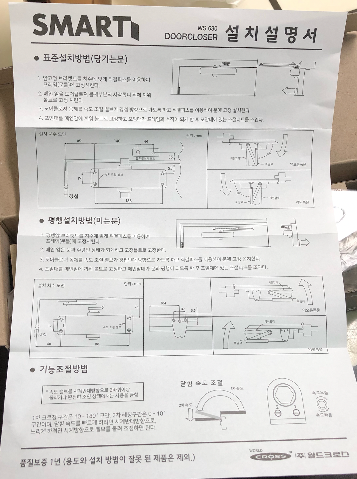 도어클로저 교체. 문 자동으로 천천히 닫히도록 하는 부품. 스마트 WS630 본문