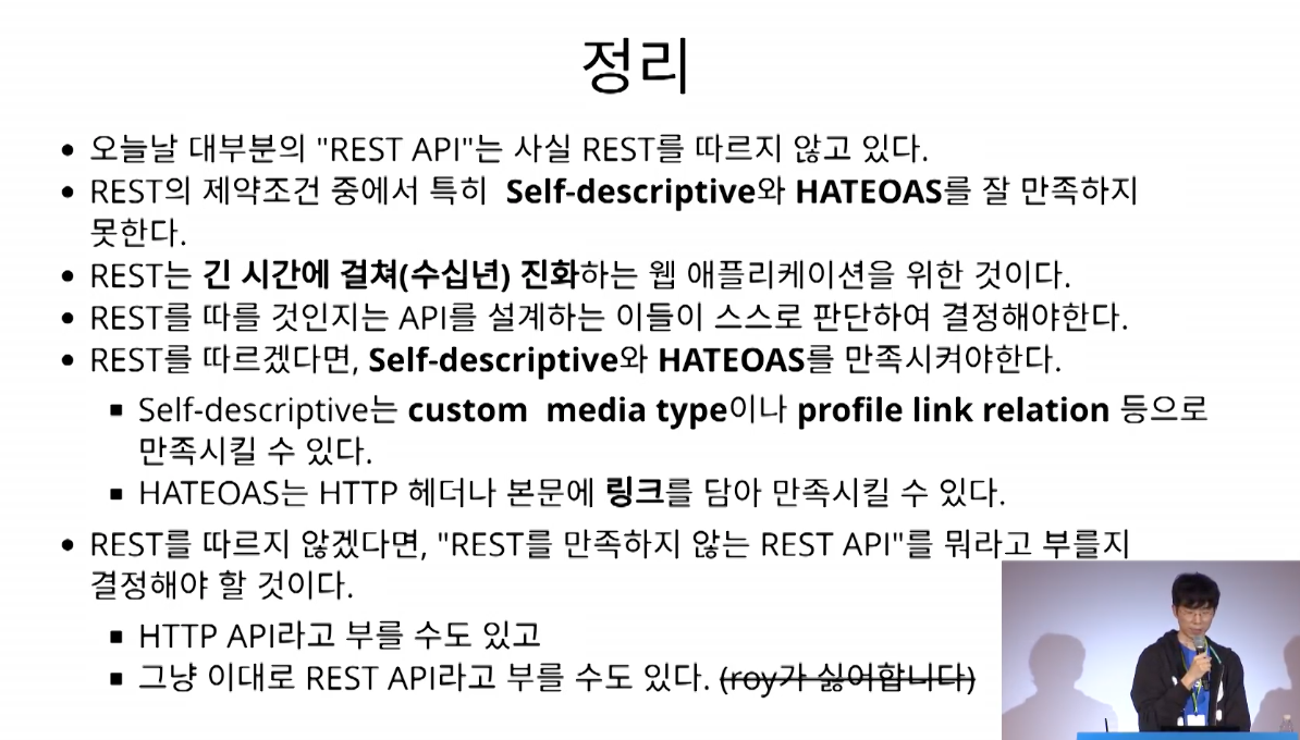 4년 정도 지난 영상이지만 REST API를 작성하고 있다고 생각했다면 이 영상을 한번 보는 것을 추천합니다.