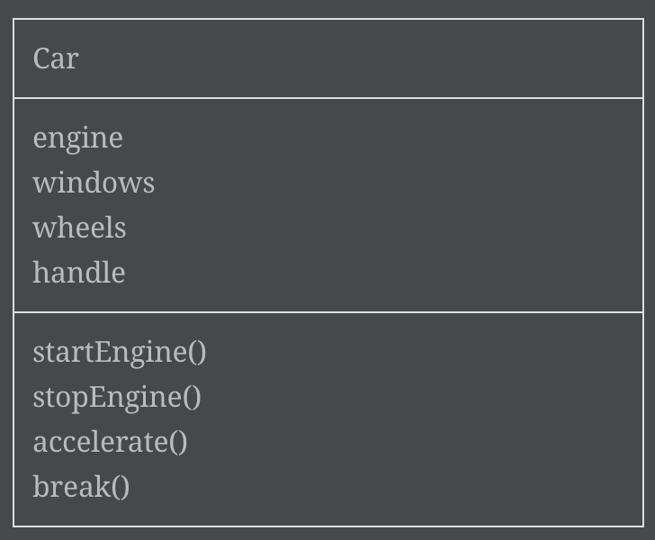 보통 자동차를 예로 드는 경우가 많은데 자동차라는 객체는 여러 속성(Attribute)들과 행동(Operation)들이 있습니다.