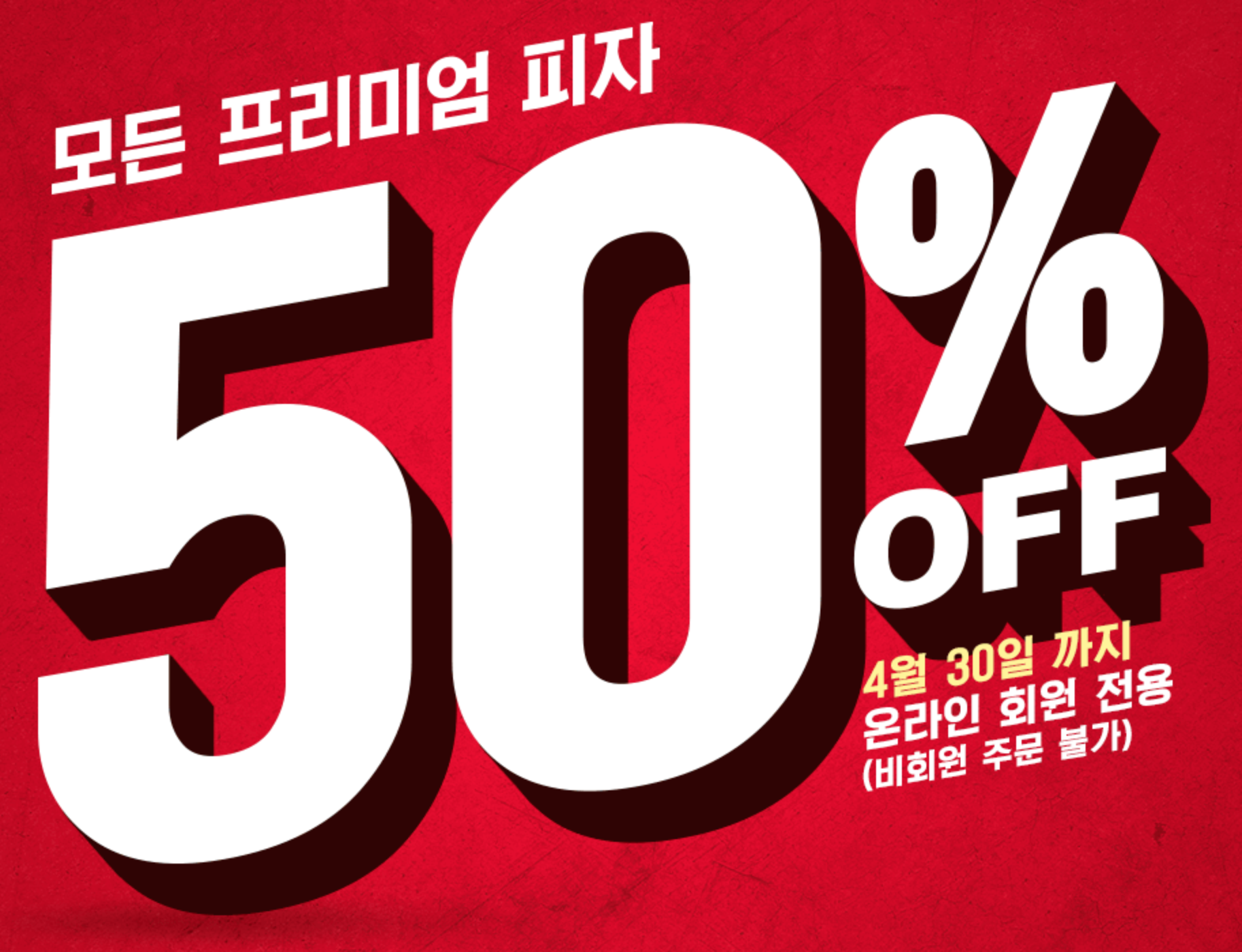 요즘 피자헛에서 온라인으로 주문 시 모든 프리미엄 피자를 50% 할인하는 행사를 하고 있습니다. 비싸서 피자를 자주 사 먹지는 못하지만 50% 할인하면 부담이 많이 줄어듭니다. 물론 직접 찾아와야 되지만 가게가 집과 가까운 편이라 주문하고 금방 가져올 수 있습니다 :)