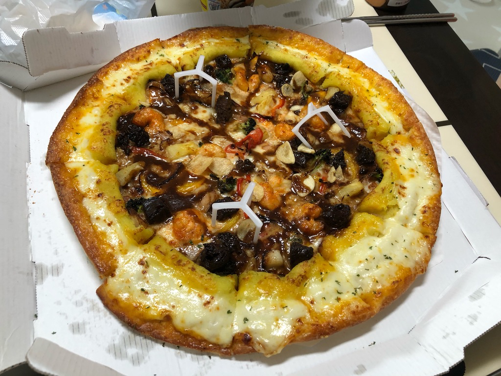 지난번에 블랙 알리오 스테이크 피자 시켜먹고 맛있어서 이번에도 시켜보았습니다. 달달한 스테이크 소스 맛이 좋더라고요.