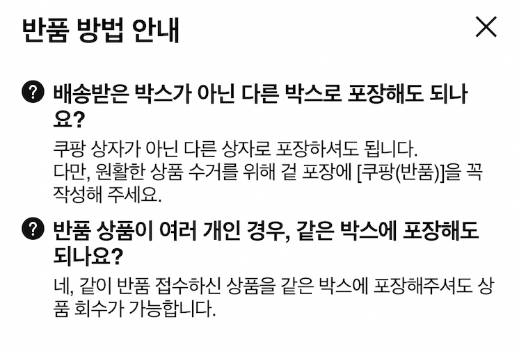 박스에는 "쿠팡 반품"이라고 적었습니다.