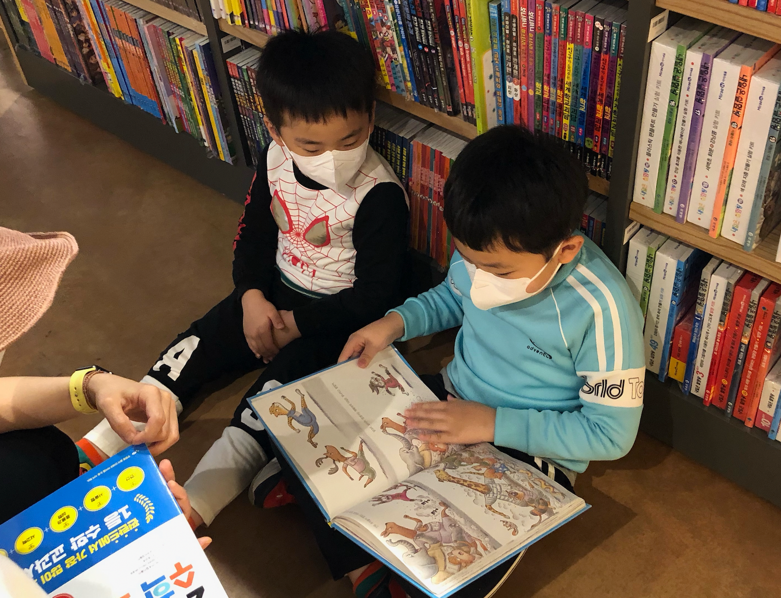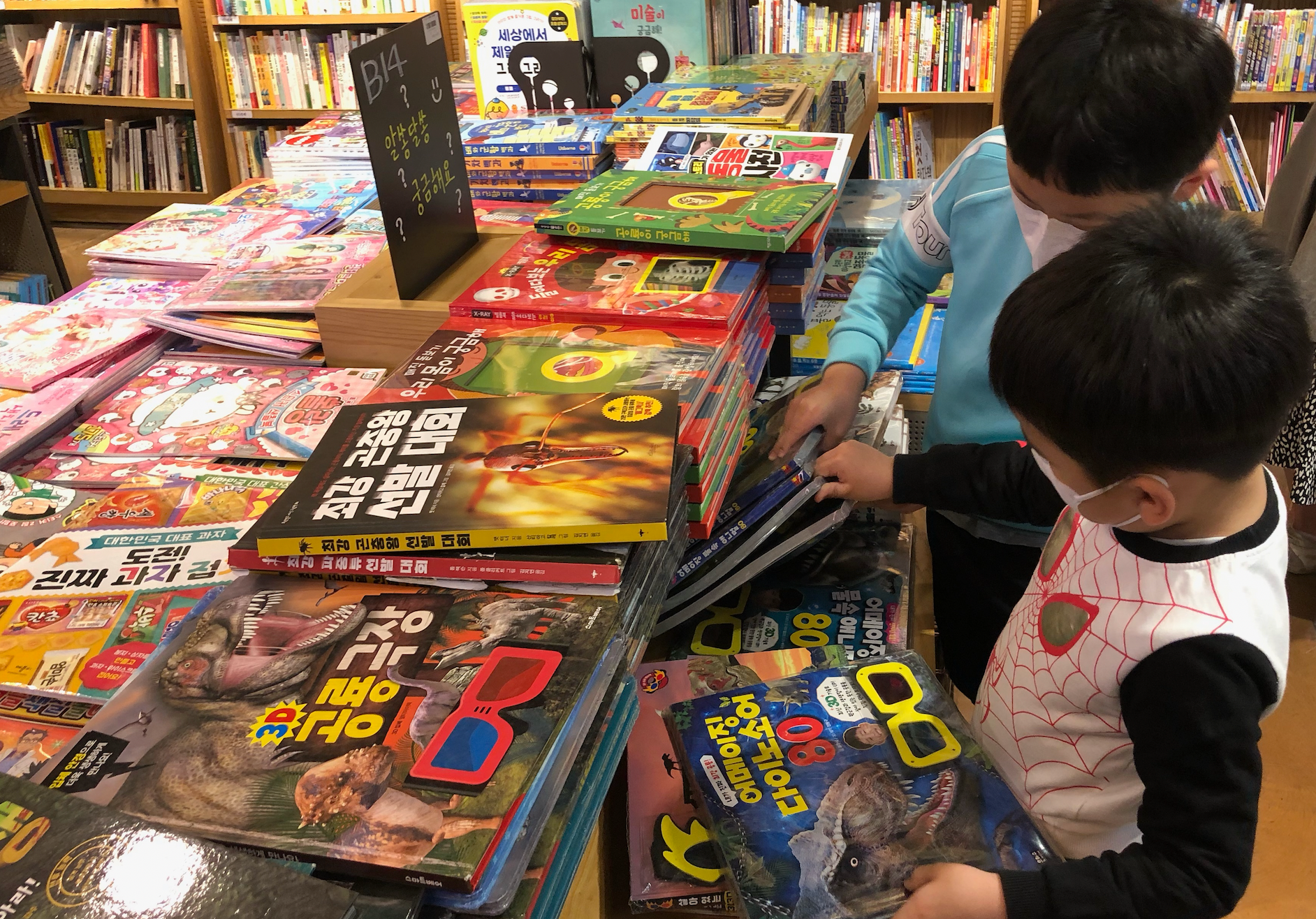 사실 아이들이 더 어렸을 때 서점에 몇 번 간 적이 있긴 했었는데요. 아기였을 때는 책 고르는 중 울어서 난감했던 적도 있고 조금 크고 나서는 천방지축으로 돌아다니거나 장난감 같은 거만 사달라고 해서 이래저래 힘들었던 기억들이 있습니다.