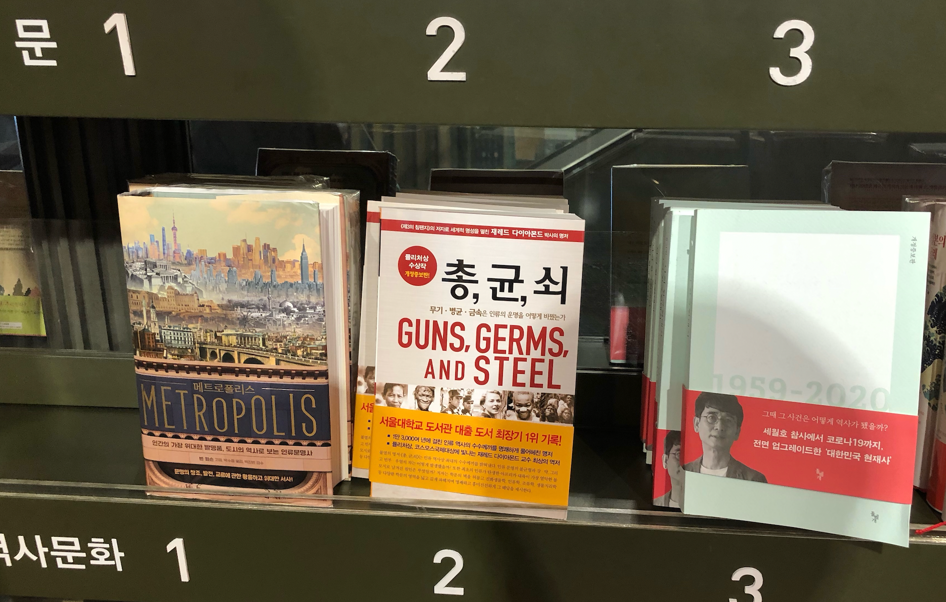 언젠가 읽어 보려고 하는 책 중 하나인 "총, 균, 쇠"책이 보입니다. 꾸준히 베스트셀러로 올라오고 있는 책인 거 같습니다.