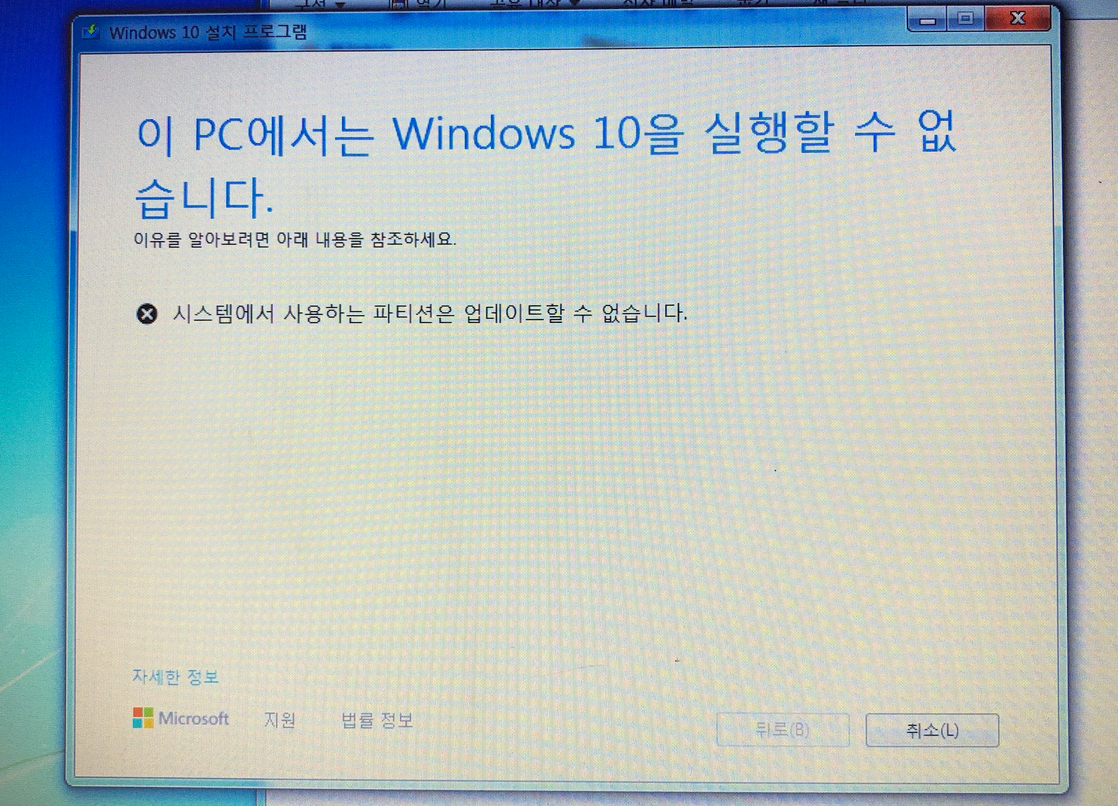 [윈도우 10 설치 / 업데이트 오류] 시스템에서 사용하는 파티션은 업데이트할 수 없습니다.