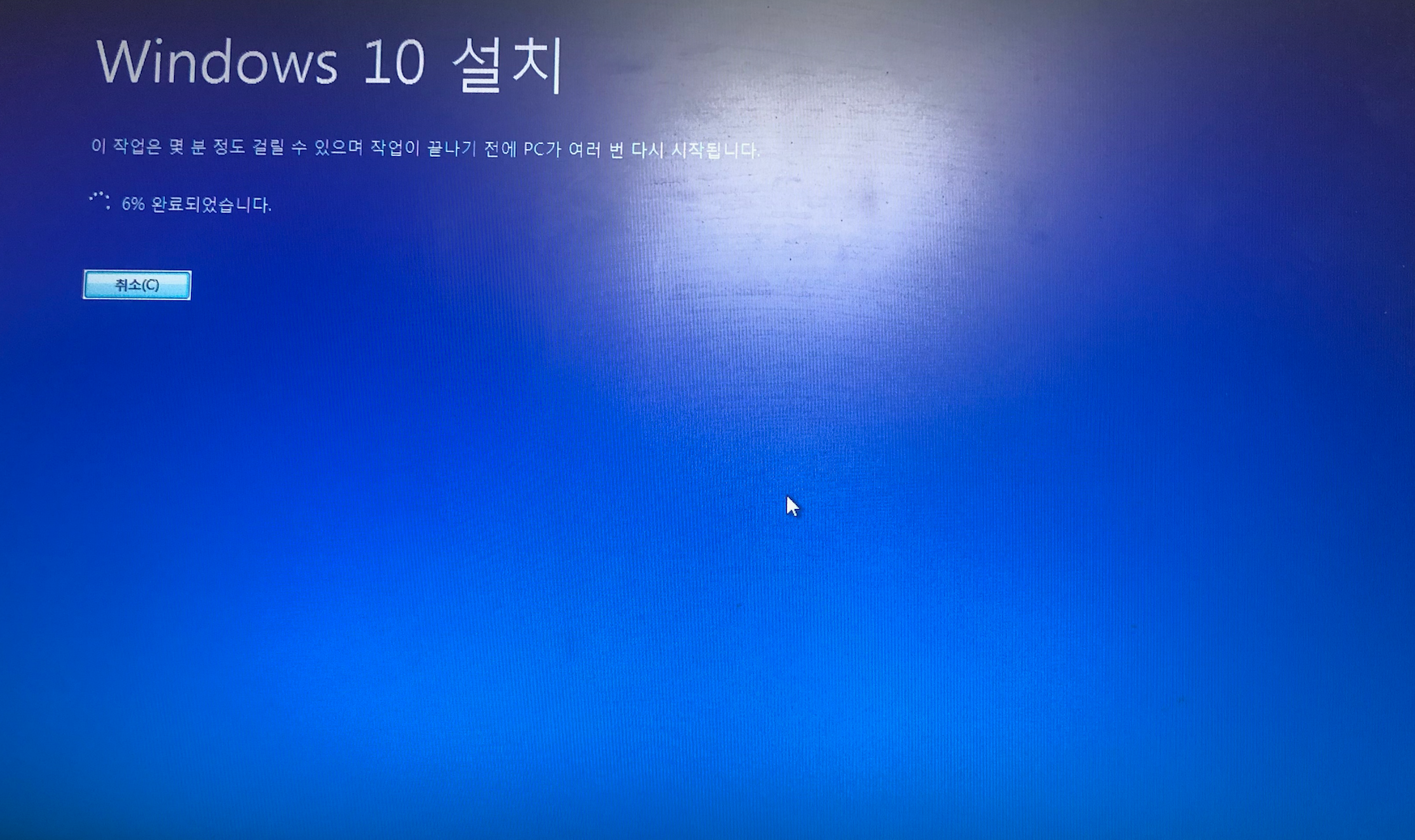 USB 부팅이 아니고 설치 프로그램을 바로 실행시키니 뭔가 진행되는 것처럼 보였습니다.