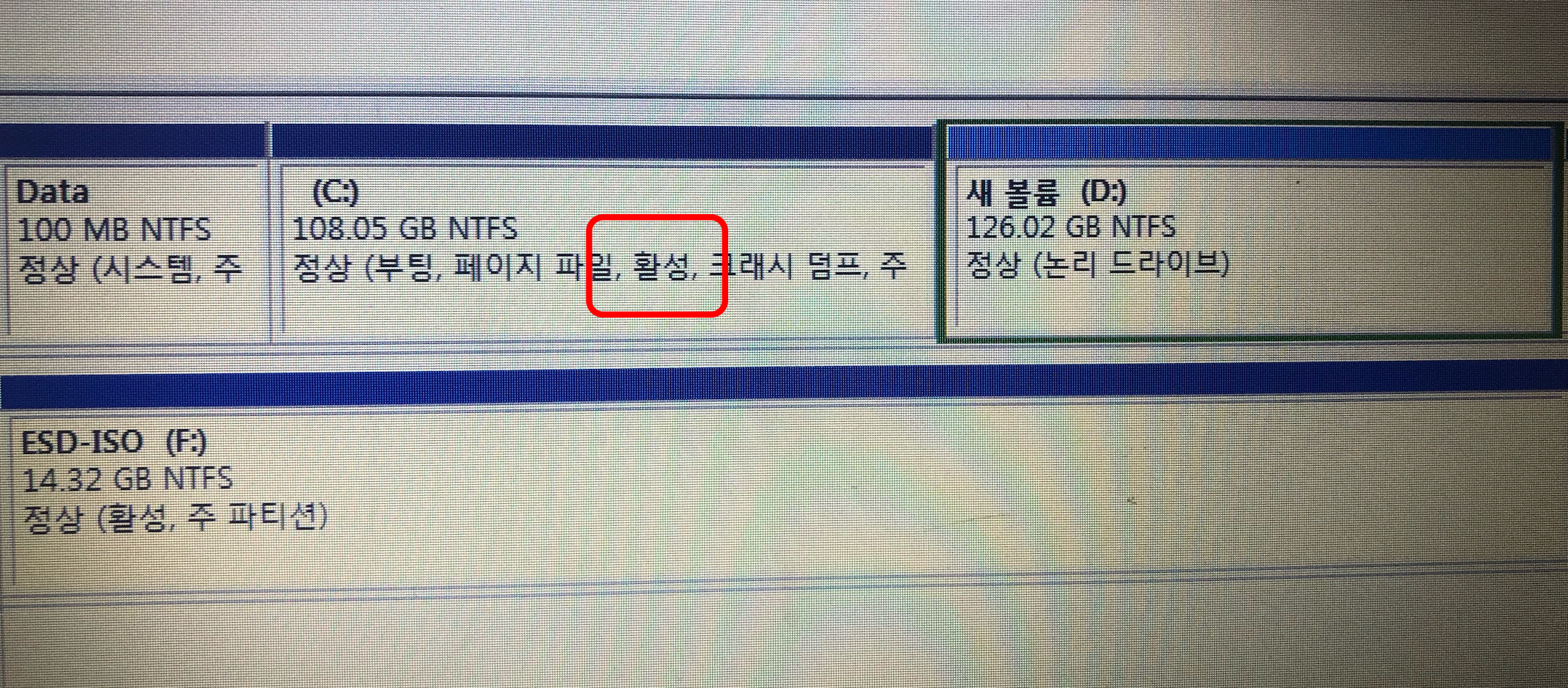 C: 를 활성 파티션으로 만들었기 때문일까요?