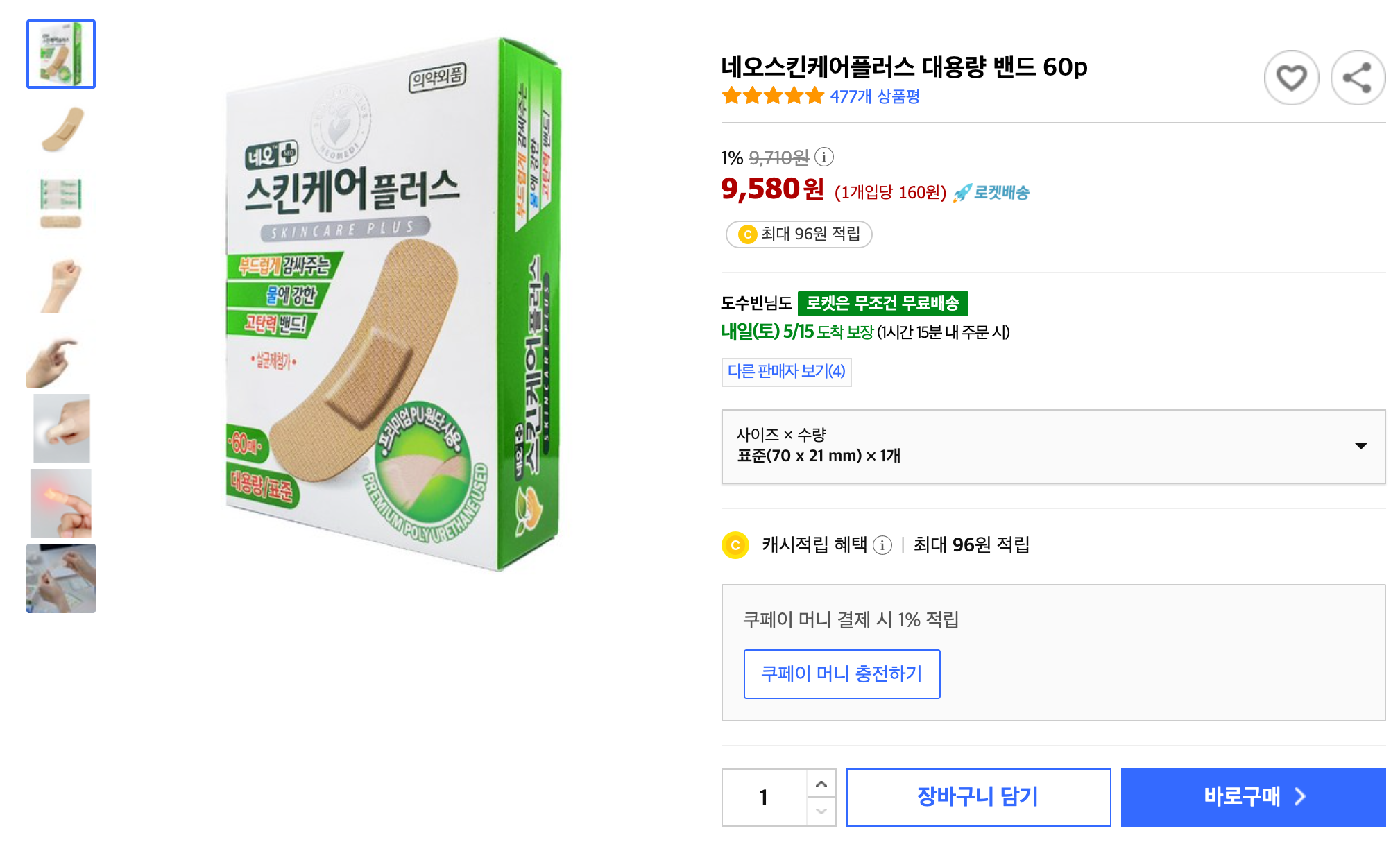 사실 얼마 전 마트에서 구입했던 반창고가 괜찮았었는데요. 로켓 배송 제품이 없어서 다음 기회에 주문해보려고 합니다.