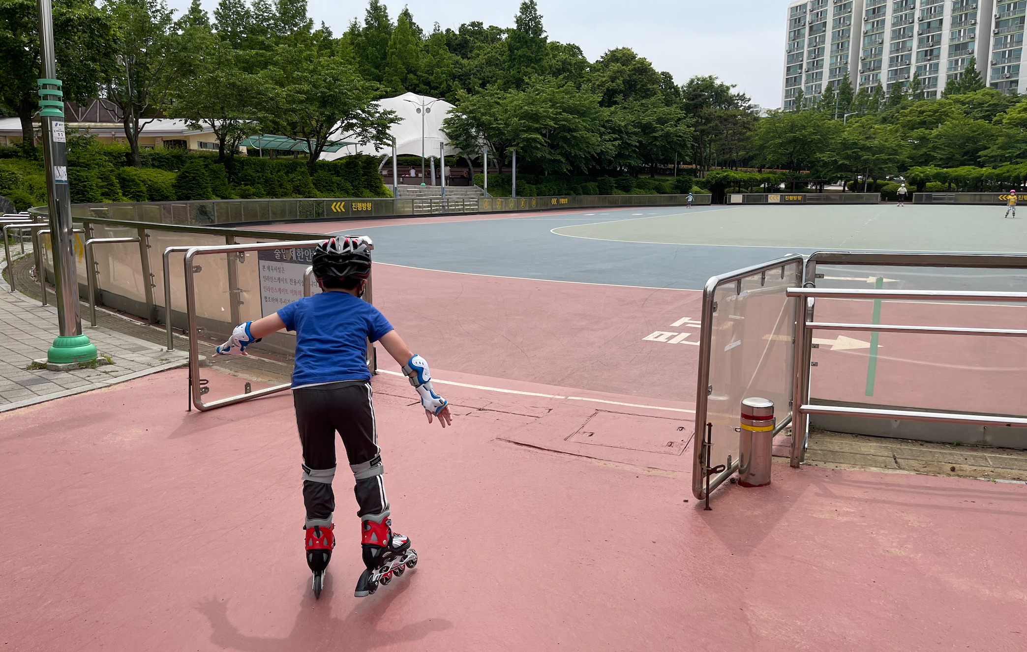 어제는 아파트 앞에서 인라인 스케이트를 잠깐 탔었는데요. 오늘은 처음으로 수지 체육공원에 있는 인라인스케이트장에 가보았습니다.