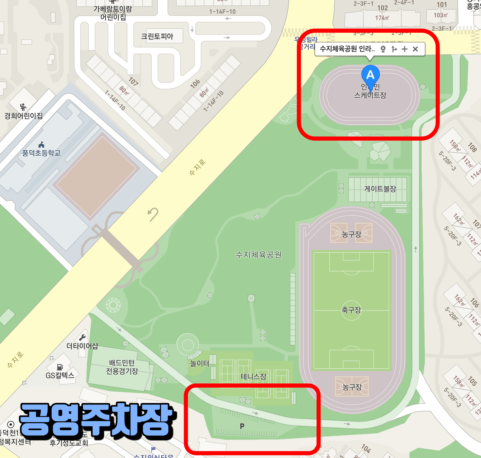 어제는 아파트 앞에서 인라인 스케이트를 잠깐 탔었는데요. 오늘은 처음으로 수지 체육공원에 있는 인라인스케이트장에 가보았습니다.