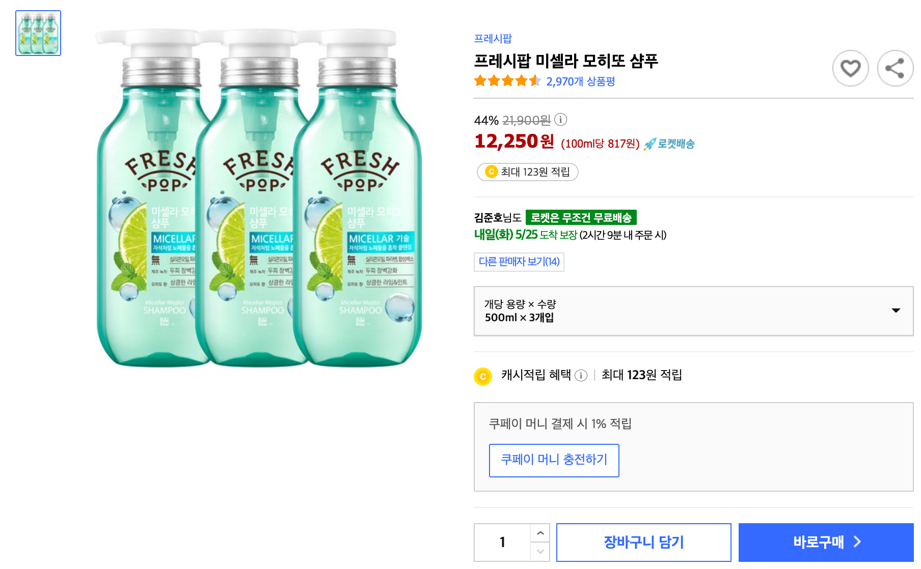 그래서 뒤쪽에 있는 프레시 팝 샴푸를 사용하고 있었는데 이거도 요즘 마트에서 안보이더군요. 그래도 쿠팡에 검색해 보니 팔고 있긴 하네요.