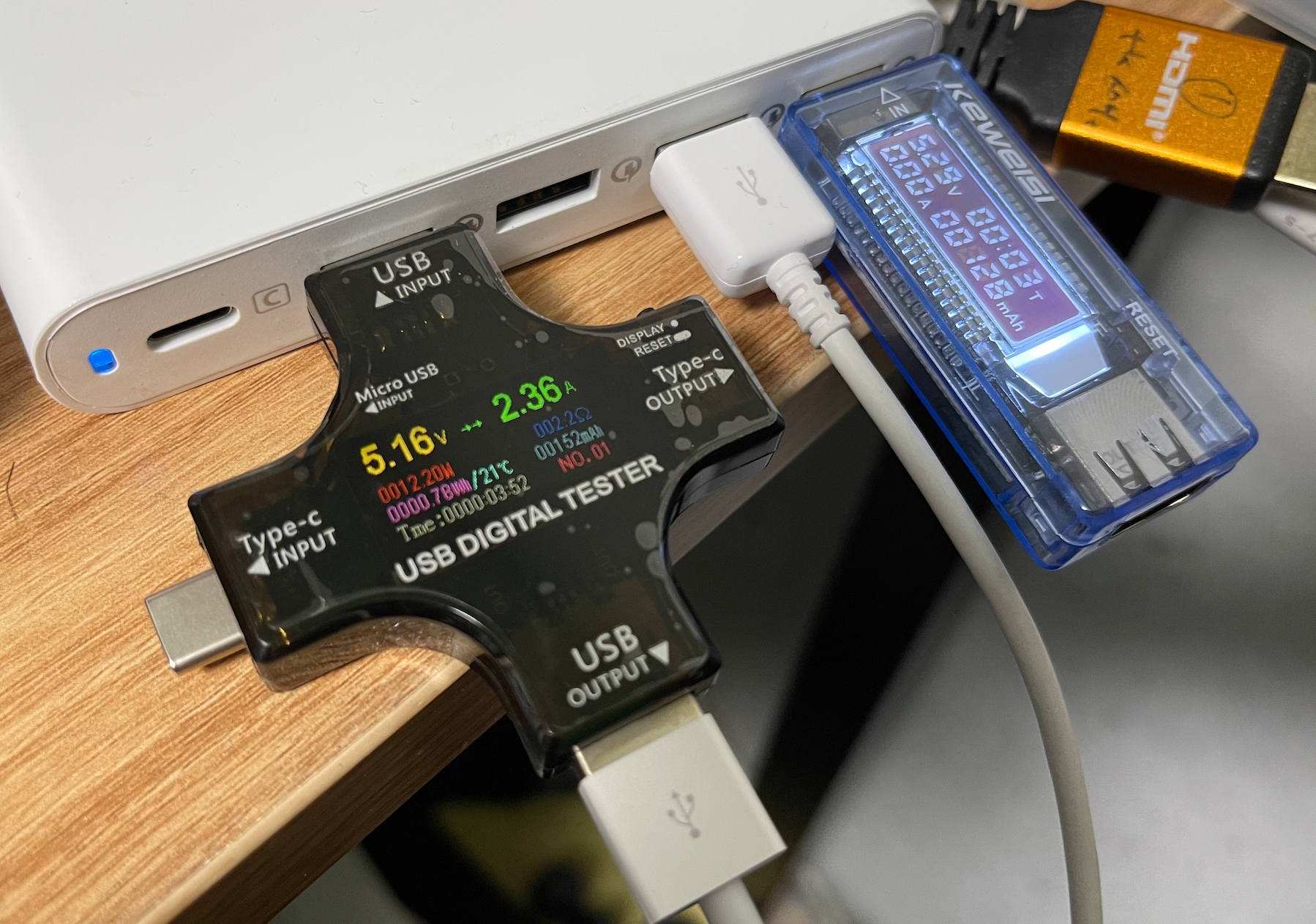 USB 전력 측정기 2개 구입. 전압, 전류, 충전량 등 충전 상태 확인 본문