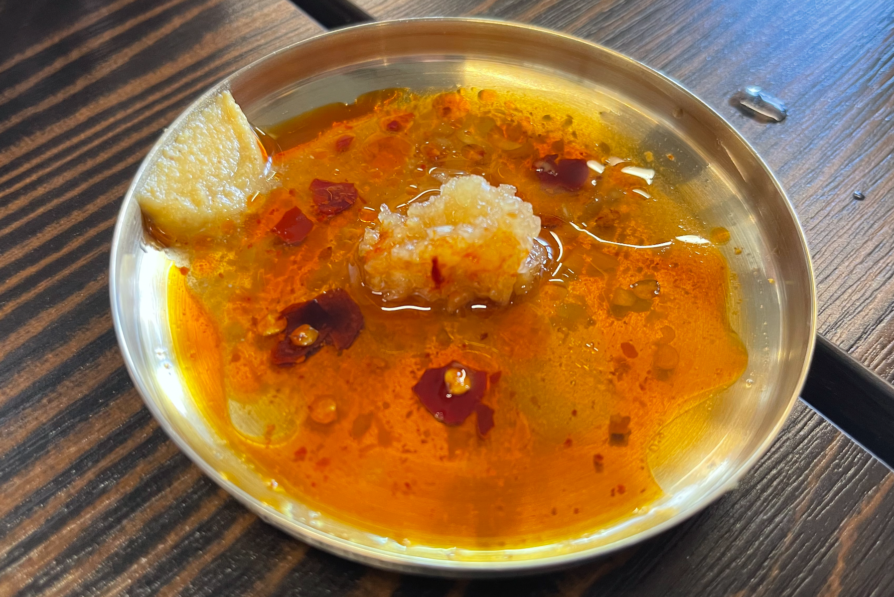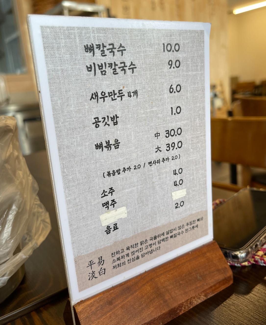 먹다 보니 좀 무겁고 느끼한 맛이 올라오긴 했는데요. 아마 원래 맛처럼 뼈칼 국수에는 청양고추도 넣고 새우만두에는 고추기름도 뿌려져 있었으면 더 맛있었을 거 같다는 느낌이 들었습니다.
